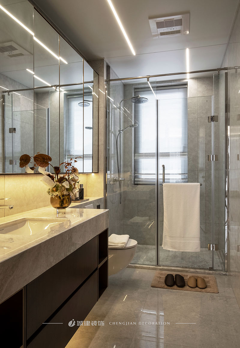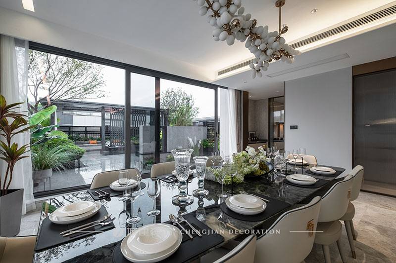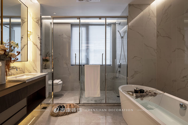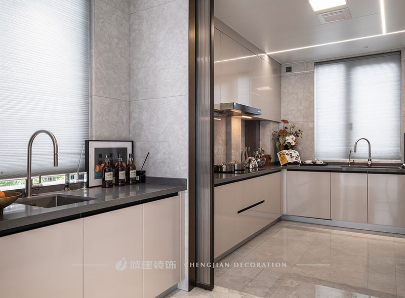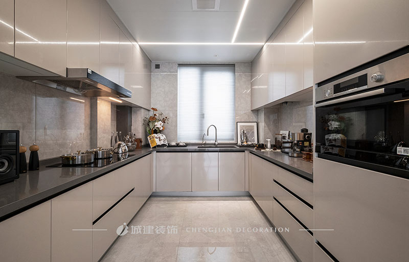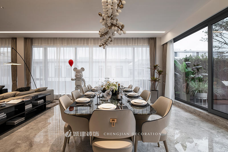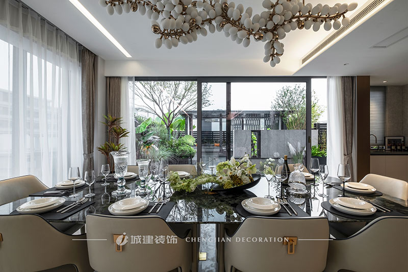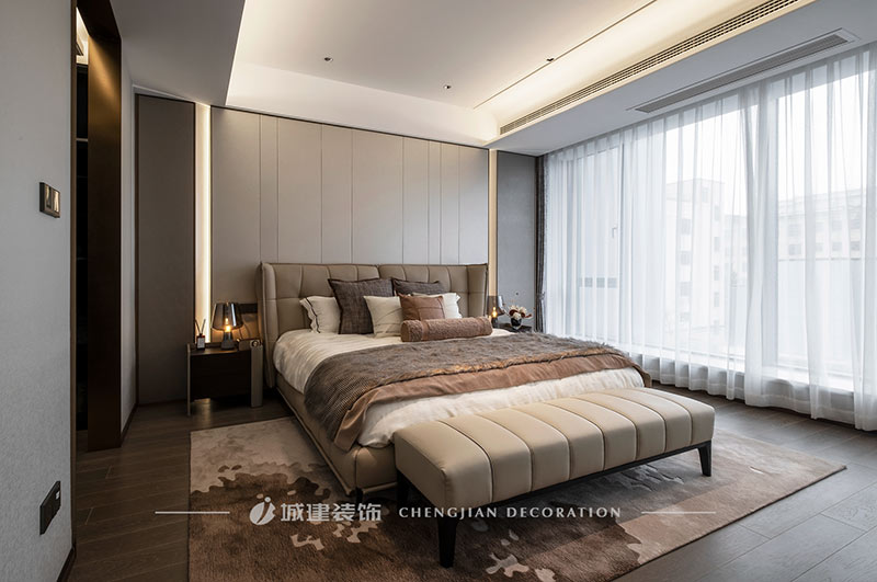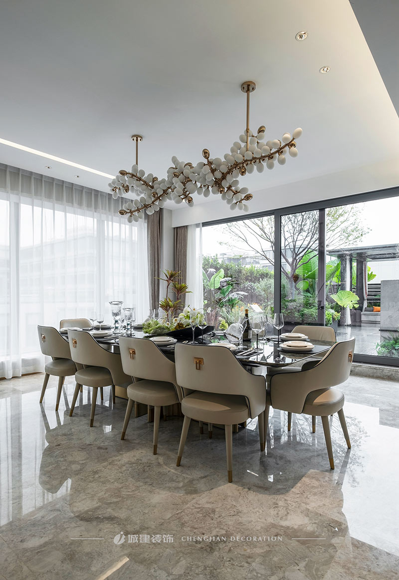 用簡潔的線條、素凈的顏色和高質(zhì)量的材質(zhì)來呈現(xiàn)一個簡約舒適、雅致高級的輕奢大平層。