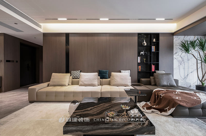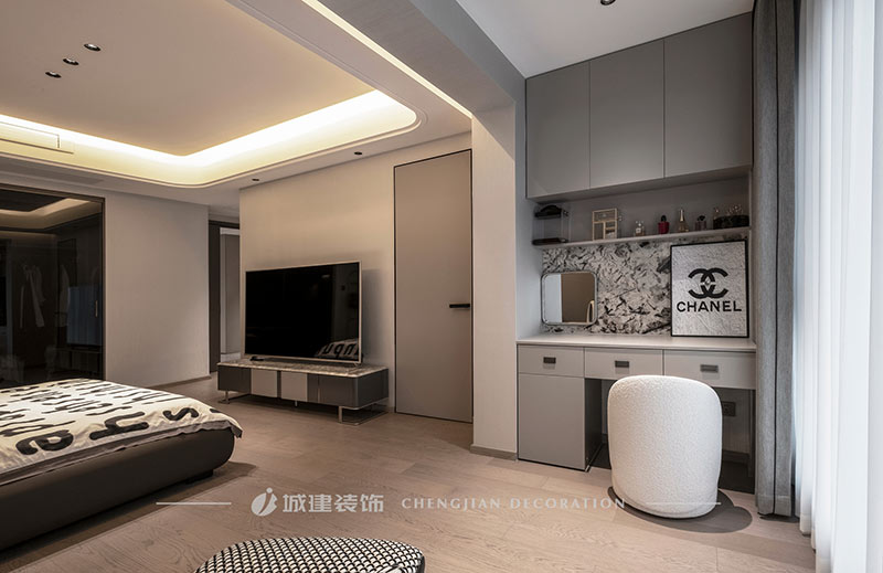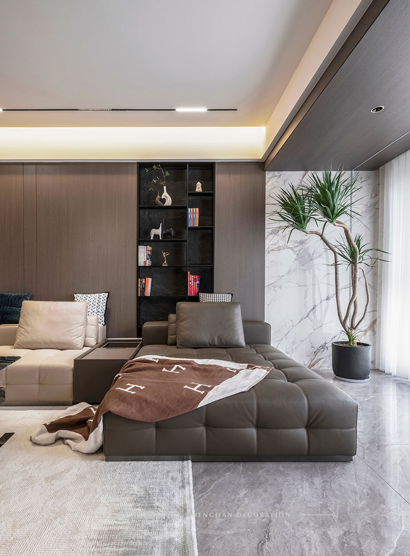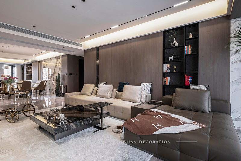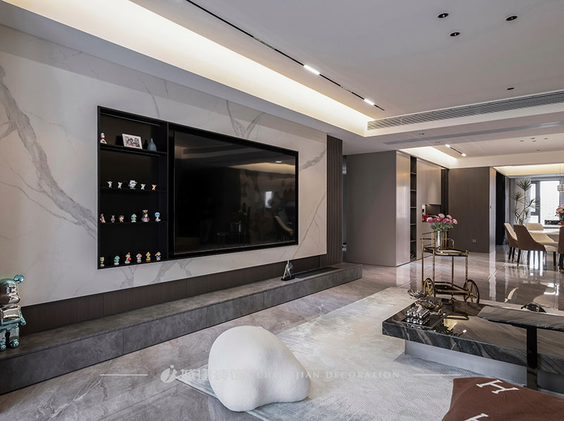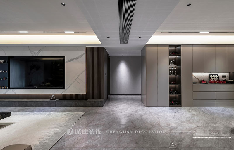 本案是杭州宋都陽(yáng)光國(guó)際五室兩廳的大平層,選擇現(xiàn)代風(fēng)格以極簡(jiǎn)的線條減輕元素堆砌的擁擠感,以局部點(diǎn)睛設(shè)計(jì)提升空間格調(diào)。