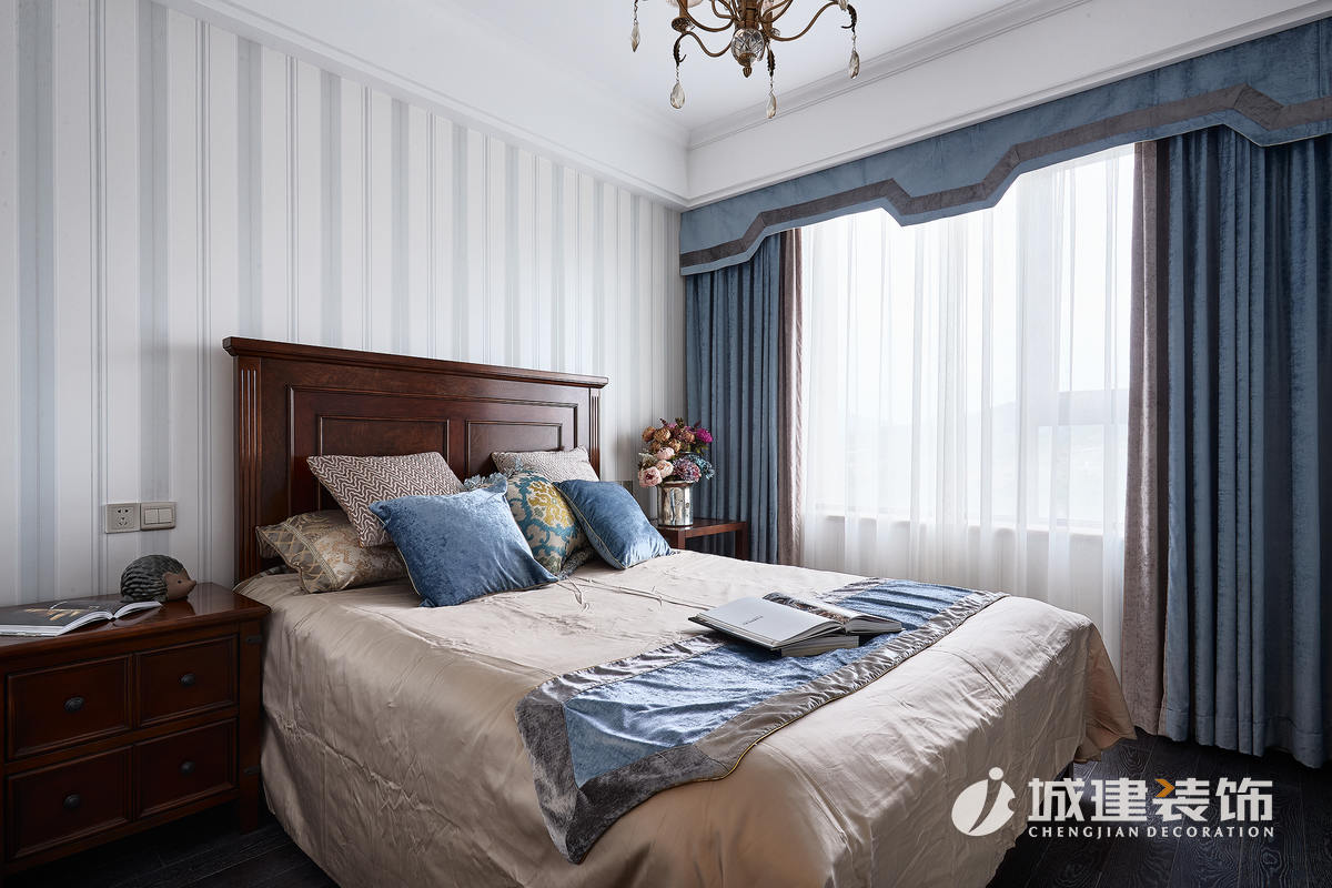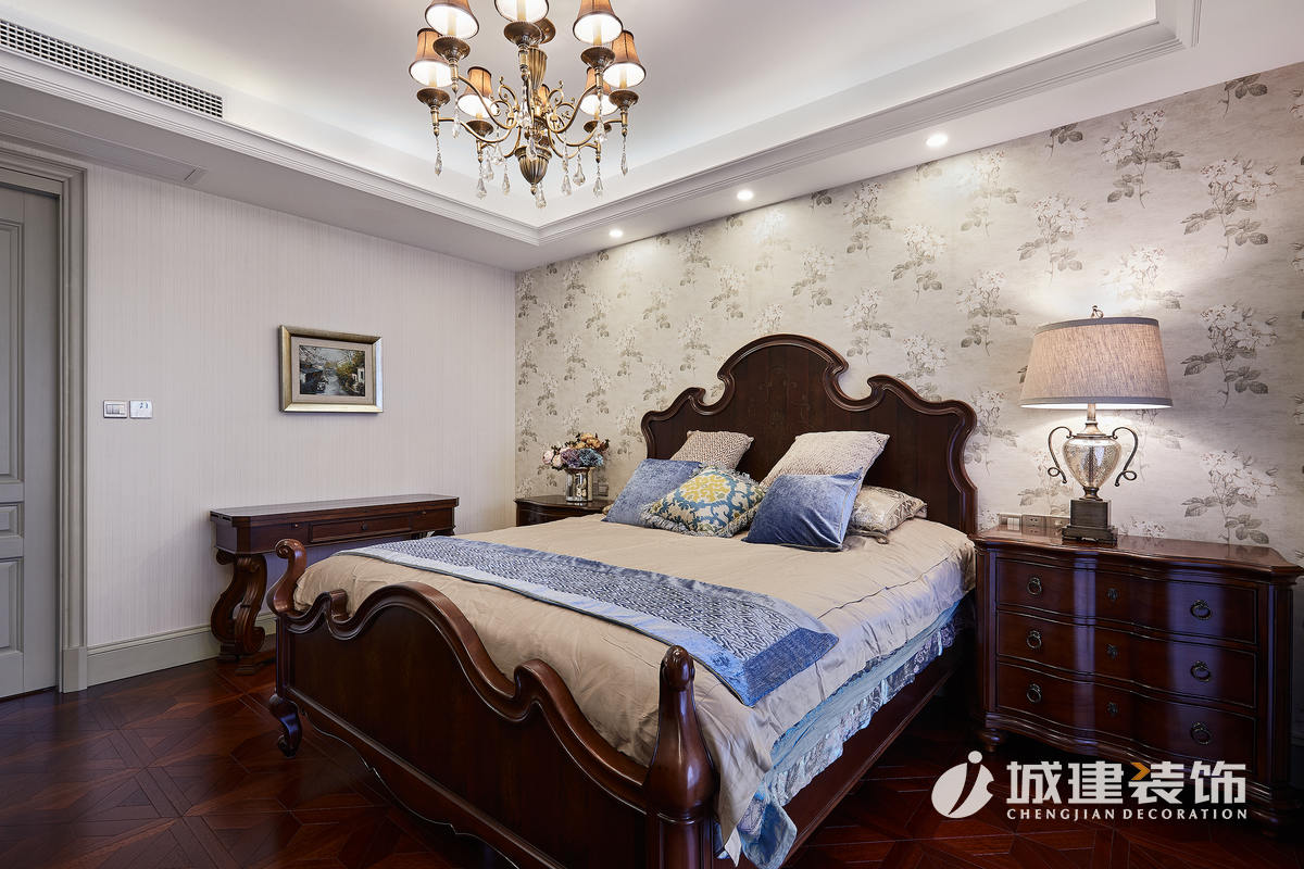 臥室作為私人空間,色彩上以平和、淡雅色系營造溫馨靜謐的休息氛圍;木質的清香深沉,在典雅床品的柔軟中,帶來一種寧靜致遠的閑適。