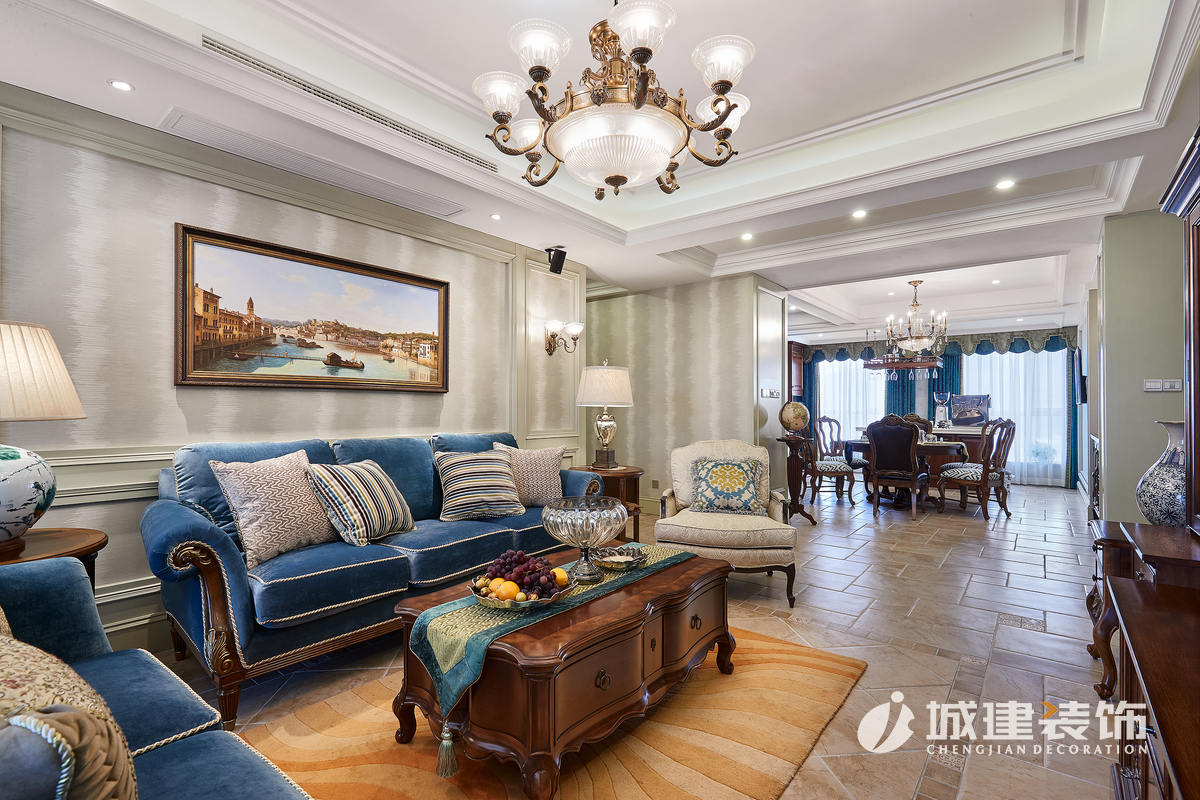 客廳護墻板定制了溫柔的淺綠色,搭配米色仿古地磚 ,電視背景選用了美式組合柜,整個空間層次搭配的條理有序,低奢氣質盡顯。將客廳與主臥的陽臺打通,打造溫馨休閑區(qū):溫暖的午后,坐在這兒看看遠處的風景,聊聊天,喝喝下午茶,好不愜意。