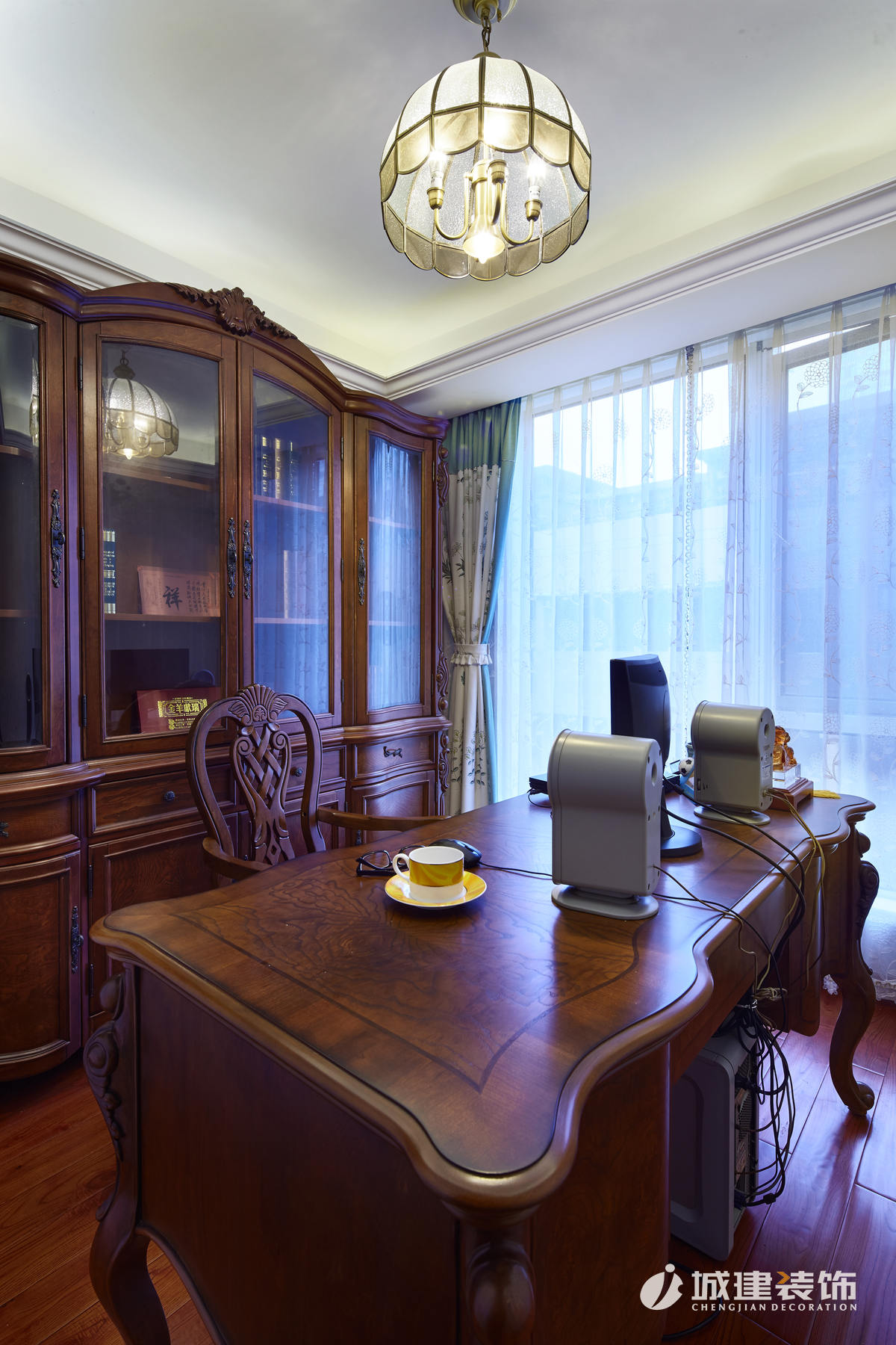 餐廳的挑空設計在很多大宅的裝修上也被極致運用,一家人齊聚一堂共享天倫之時不會因為空間受限而顯得過于壓抑,挑空設計不僅達到了空間的延展,也使餐廳整體看著更為大氣。敞開式廚房并設計了一島臺,為女主人羹湯做飯?zhí)峁┝藰O大的便利。