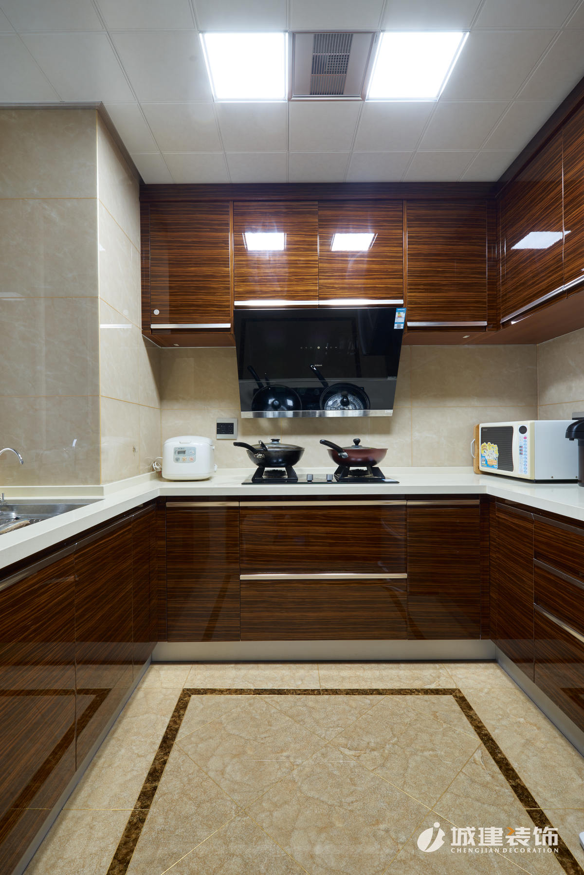 因改動了餐廳的位置,廚房的入口也相應(yīng)做了調(diào)整,原廚房口重新砌墻,并巧妙設(shè)計出一處屏風(fēng)隔斷,玄關(guān)立馬呈現(xiàn)。