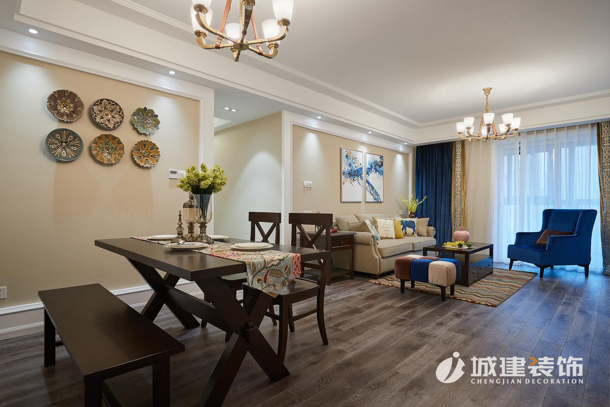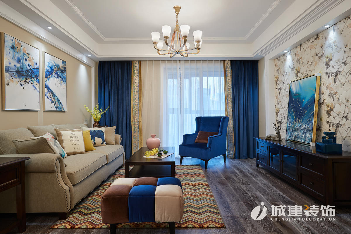 布藝沙發(fā)與花卉背景墻溫柔了整個空間。