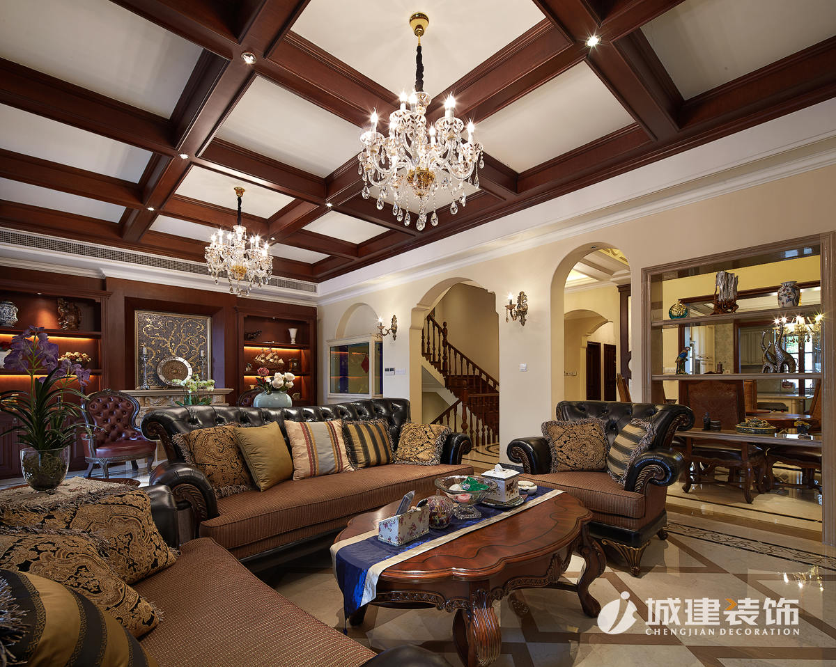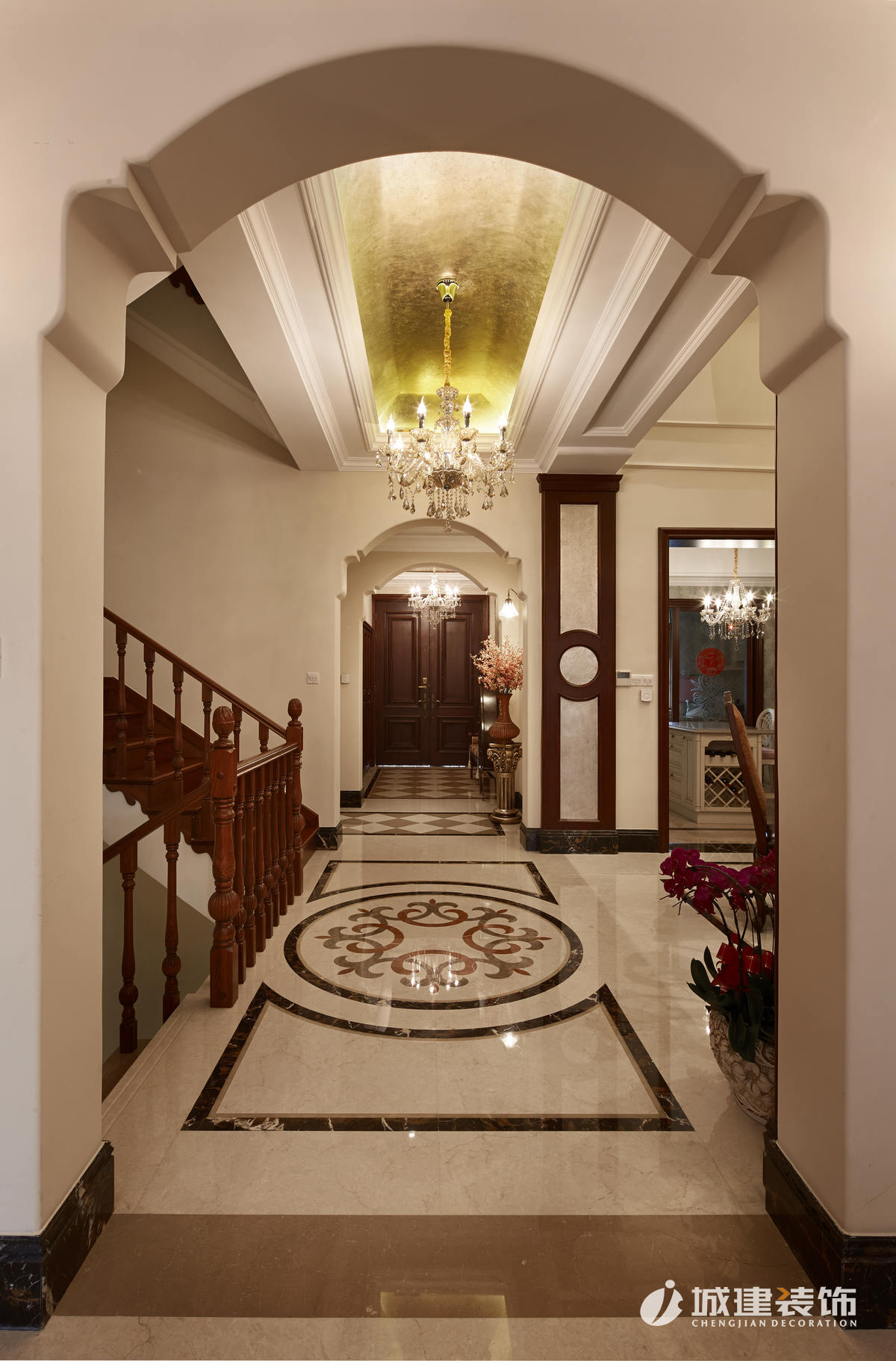 本案是溪上玫瑰園560㎡別墅案例,主要用材:莎安娜大理石、拋光磚、實(shí)木地板、壁紙、硅藻泥、美式家具等