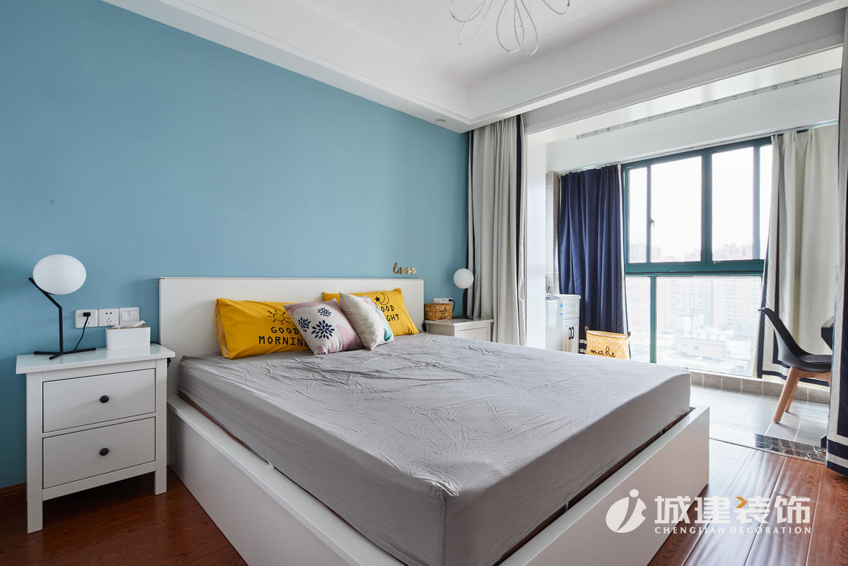 臥室總體色彩搭配明亮簡潔,柜體設計大氣實用,提供了充足的儲物空間,也是讀書看報的好地方。
