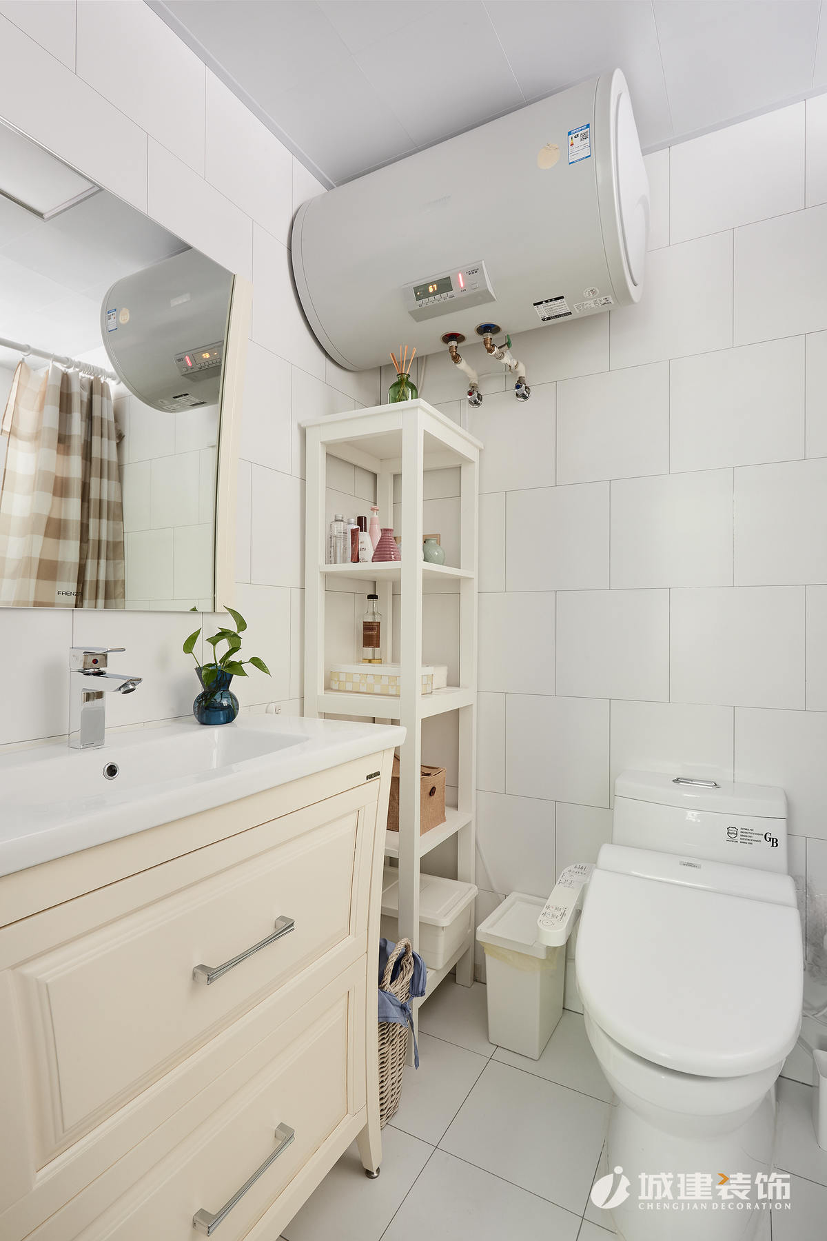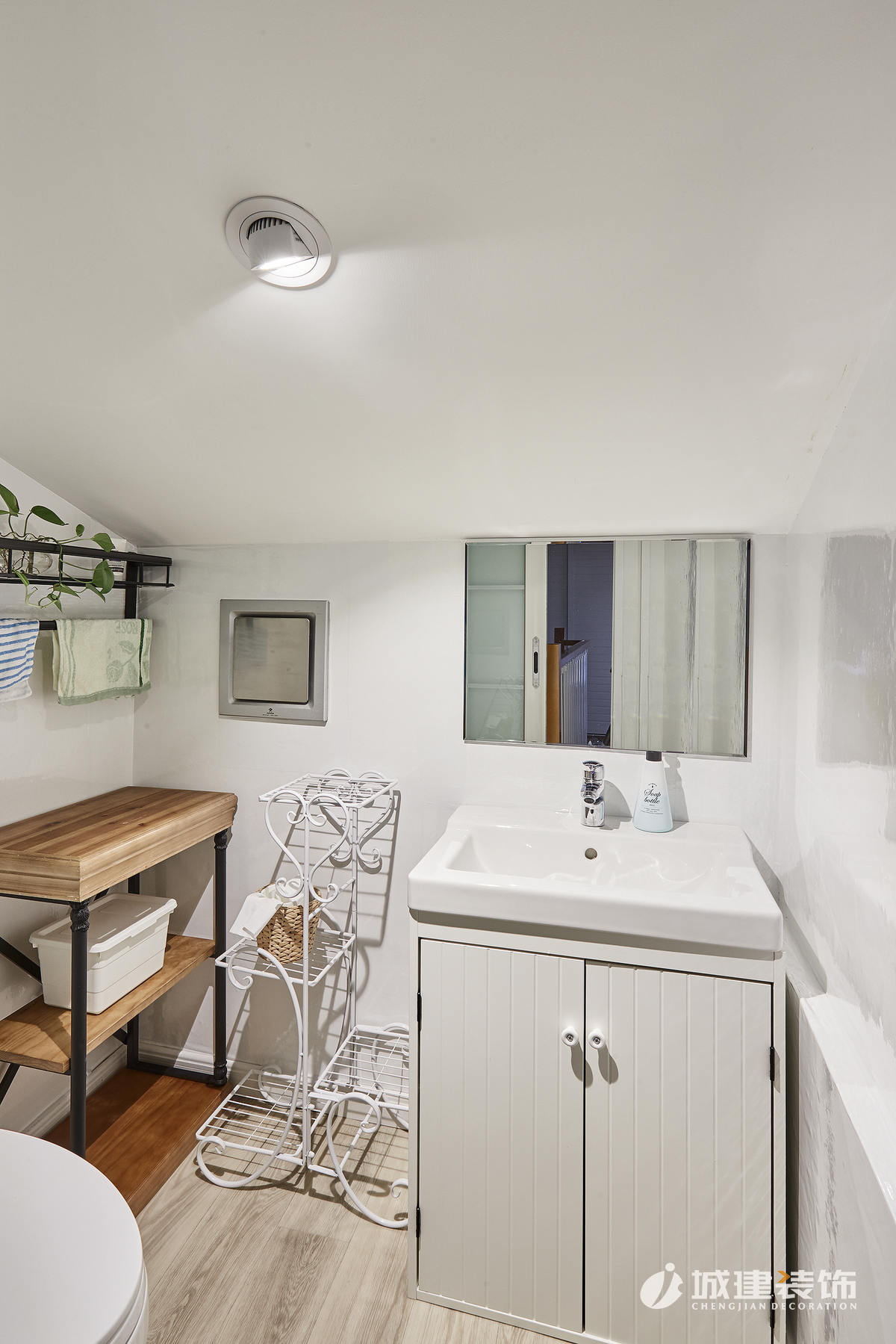 衛(wèi)生間也是充分利用了各種邊角,不僅要盡可能的儲物還要盡可能的美觀。