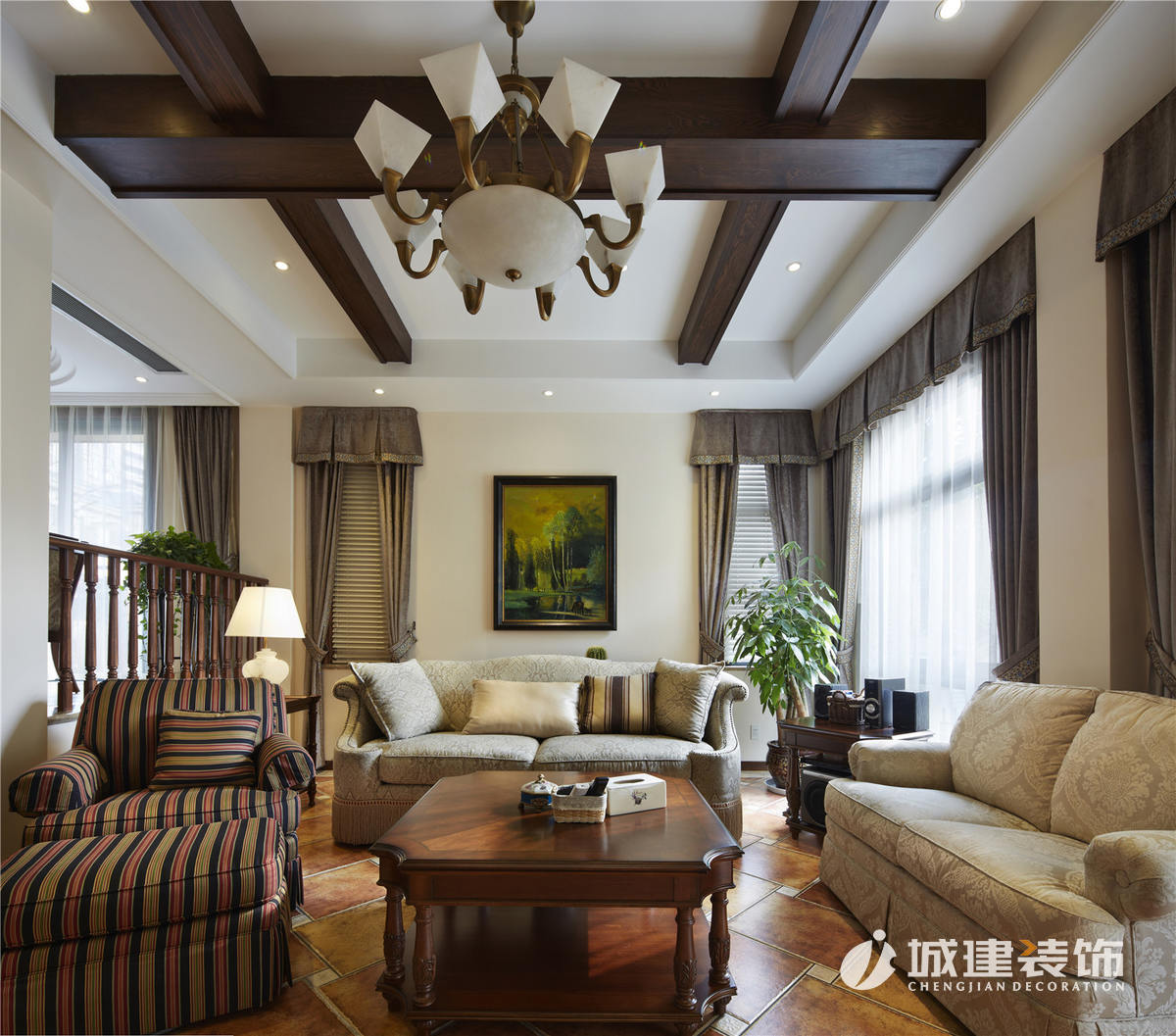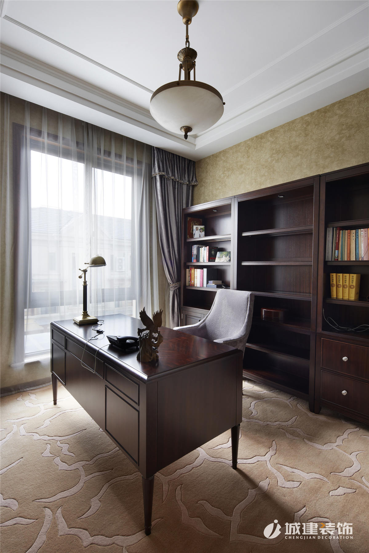 本套作品依托了官邸建筑的特質(zhì),結(jié)合美式休閑的無(wú)拘無(wú)束,對(duì)空間的利用和布局做了深入考量。設(shè)計(jì)從功能出發(fā),人性化的空間劃分。作品除了奢華,將人性美的植入也是一抹重筆!