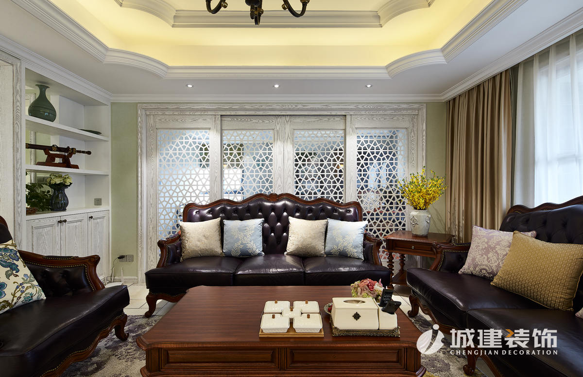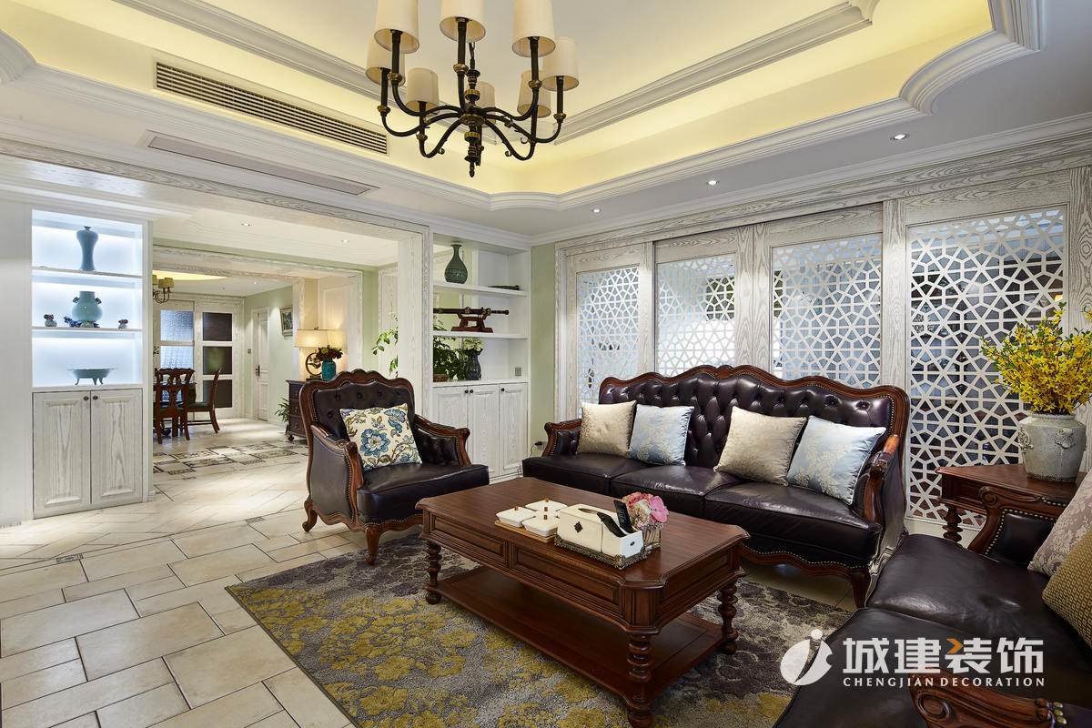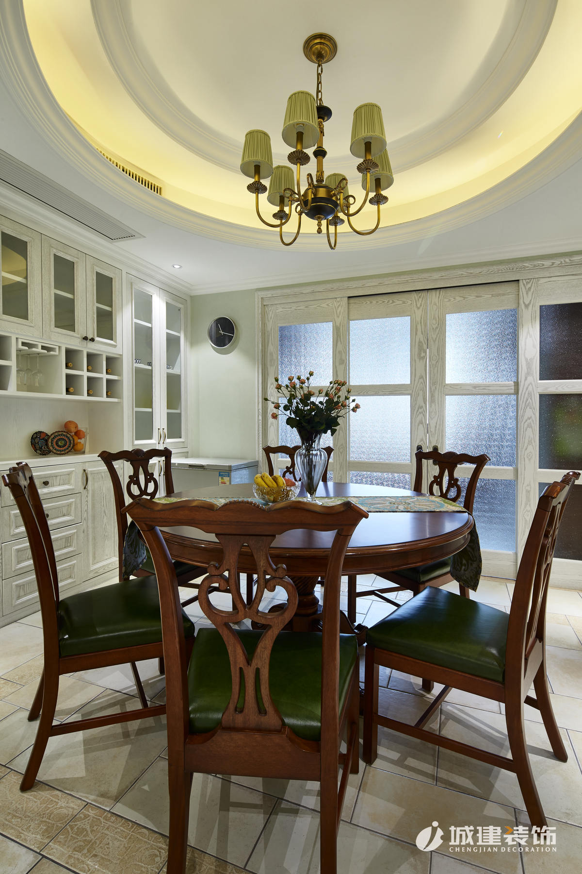 玄關(guān)仿古做舊的鞋柜、拼花鋪貼的地磚、玄關(guān)柜上別具一格的臺燈和擺花,馬上就能把人引入濃濃的美式風情之中。