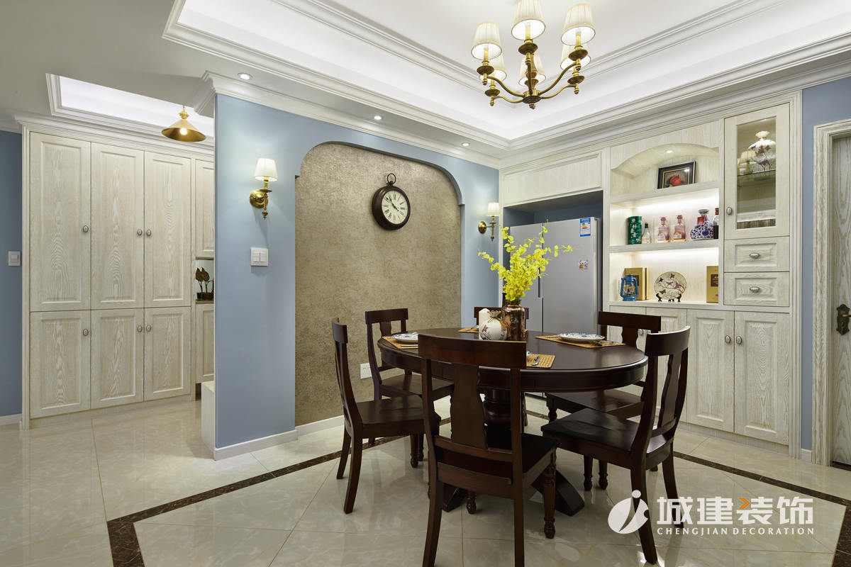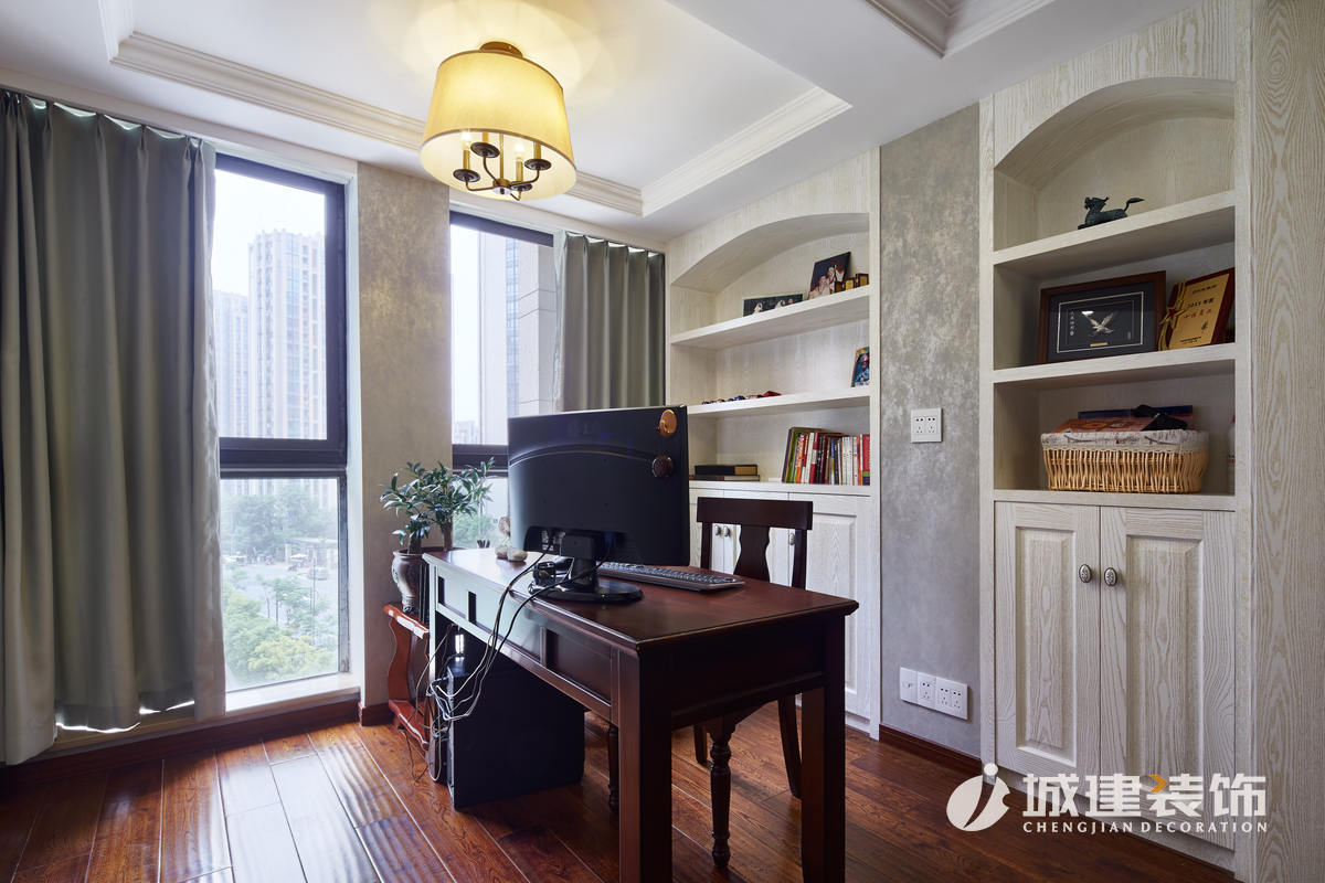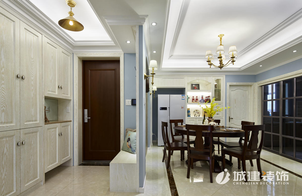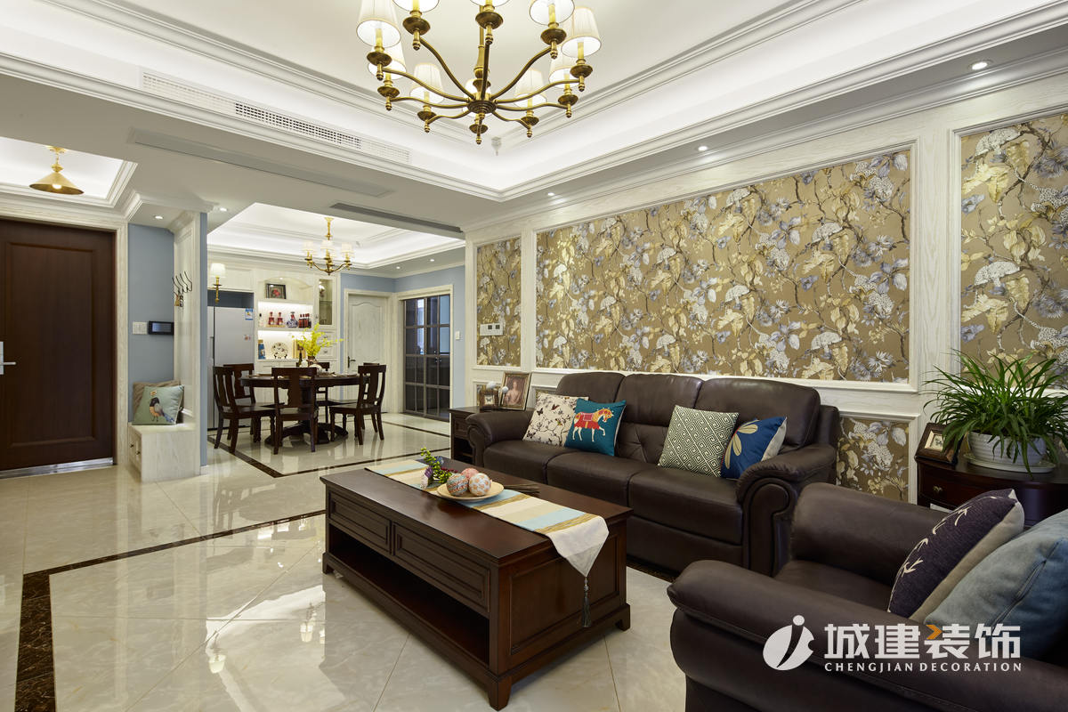 四個(gè)陽(yáng)臺(tái)最后只保留了公共區(qū)域,即客廳處的陽(yáng)臺(tái)。主臥把陽(yáng)臺(tái)納入后擴(kuò)充了面積,另設(shè)計(jì)出一片書房,滿足了男女主人辦公書寫所需。整套案例應(yīng)客戶需求采用美式風(fēng)格,玄關(guān)處貼心的卡座設(shè)計(jì),餐廳處別具一格的造型設(shè)計(jì),客廳處素色淡雅的壁紙搭配皮質(zhì)沙發(fā)……空間中的一切無(wú)不從這美式風(fēng)格這一要素出發(fā),舒適且唯美。
