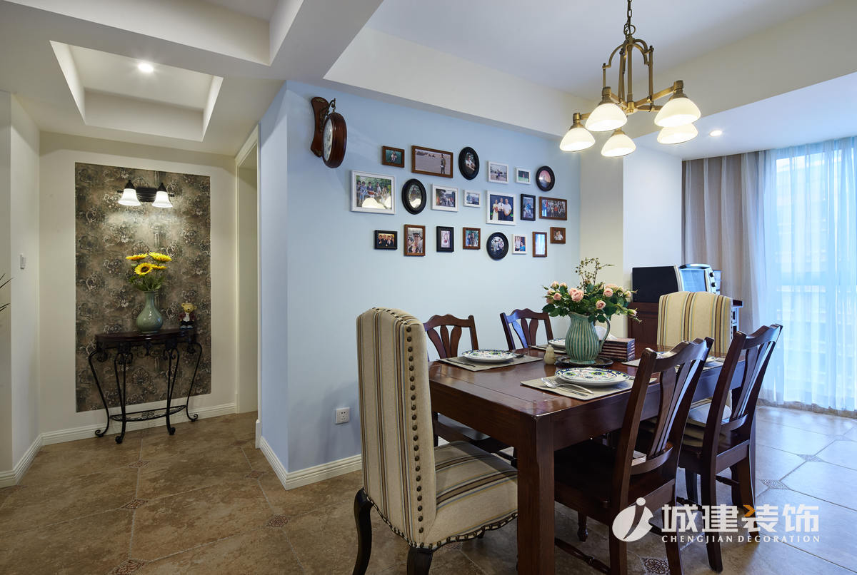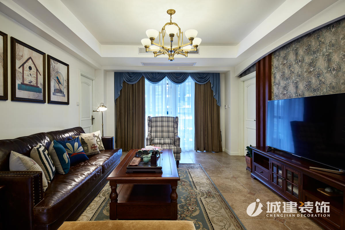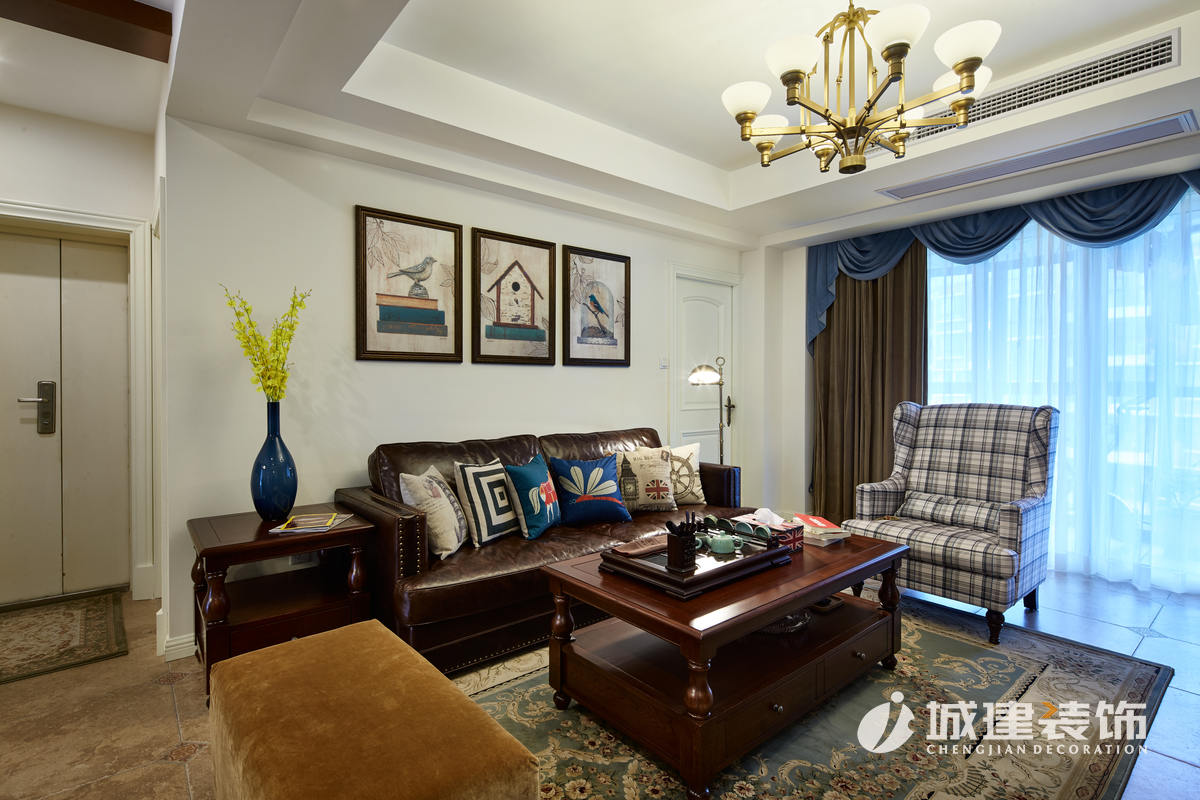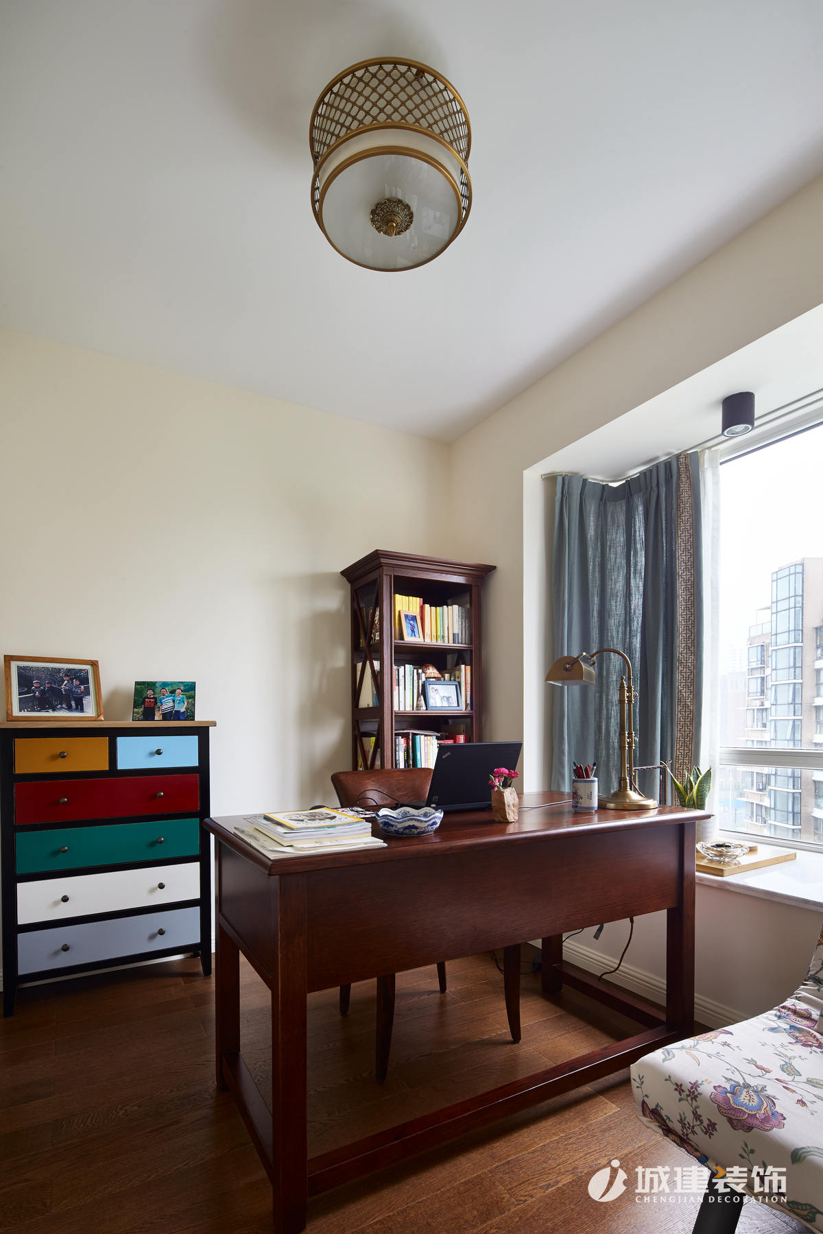 本案整體采用素色基調的美式風,初入玄關時花色壁紙、亮眼的向日葵立馬映入眼簾,美不勝收。餐廳處特色的燈具、美式風情的燈,一家人的照片墻,處處透著溫馨氣息??蛷d選用美式常用的皮質沙發(fā)和布藝沙發(fā),背景的三幅掛畫同樣彰顯美式風格,黃色跳舞蘭提高了整個空間的層次感,靈動耀眼。主次臥中原戶型兩個飄窗在設計過程中都保留了下來,成為臥室主人或坐或臥的休閑區(qū)域,倚窗而坐焚一杯清茶,欣賞室外美景,想想就讓人心動。