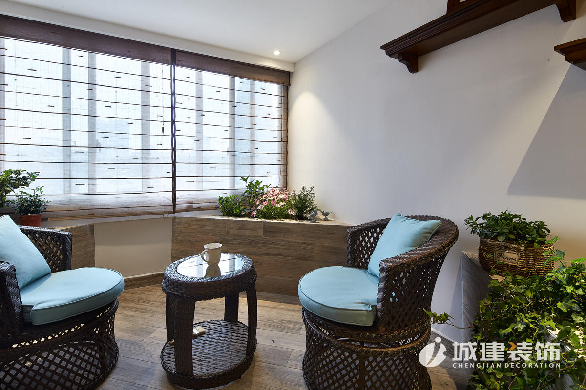 開闊的敞廳,潔白的墻面,配幾株綠植,深色的家具既突顯了墻面的光亮,又讓整個客廳沉穩(wěn)下來。包括墻面的木質(zhì)裝飾,擺幾個小油畫相冊、多肉植物、手工藝品,靈活便捷??看皯?,單獨做了一個開放式的小茶室,充分利用采光優(yōu)勢。