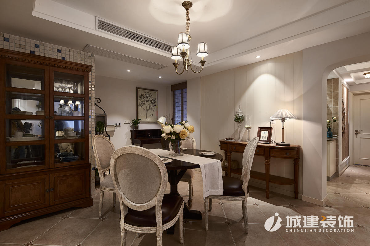 開放式的餐廳,無論招待親朋,還是一家人日常生活,都卓為大氣,餐廳到客廳,兩步即可。四人餐桌,六人亦可,白色高背實木餐椅,深褐色圓桌,這樣顏色協(xié)調(diào)仿佛在客廳也能找到如斯之感。