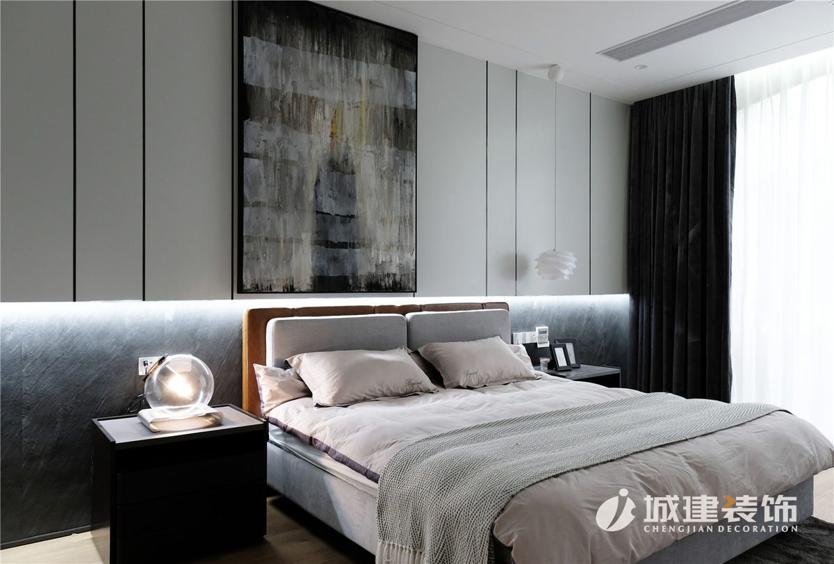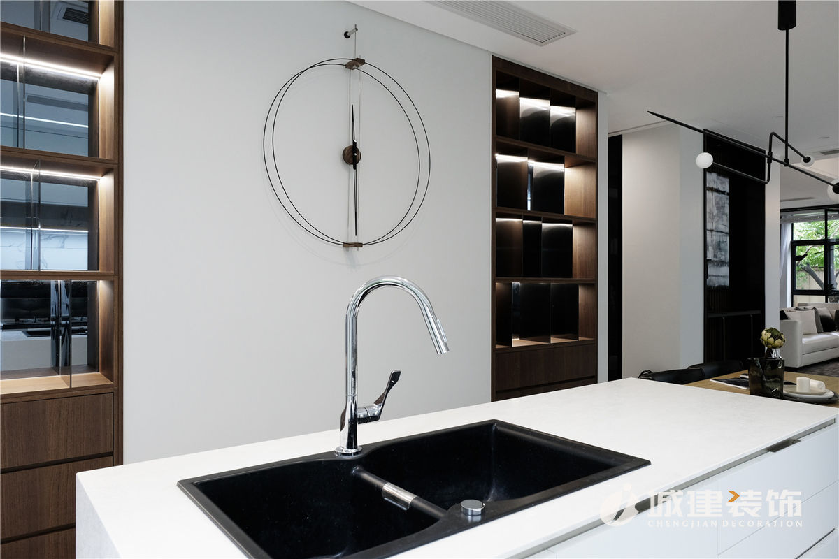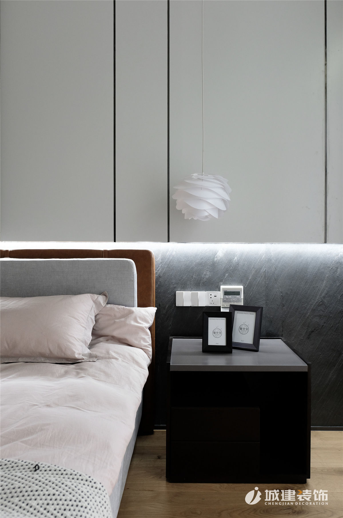 設(shè)計(jì)采用大面積的白色烤漆,黑胡桃木,玻璃幕墻。充分利用空間,形成黑白對(duì)比碰撞的效果。采用大幅裝飾畫,與空間格調(diào)進(jìn)行呼應(yīng),現(xiàn)代開放式廚房設(shè)計(jì),一字型導(dǎo)臺(tái)與原木餐桌重疊,從視覺上拉長(zhǎng)空間??蛷d開放式的空間設(shè)計(jì)搭配意大利現(xiàn)代家具,設(shè)計(jì)延續(xù)整體現(xiàn)代簡(jiǎn)約風(fēng)格。整體采用高級(jí)灰搭配皮質(zhì)元素,體業(yè)主品質(zhì)生活方式。臥室延續(xù)男主人灰色系的生活格調(diào),整個(gè)空間還特別根據(jù)業(yè)主需求,滿足業(yè)主夫妻的需求,分別單獨(dú)劃分空間設(shè)計(jì)各自的“獨(dú)處”世界。