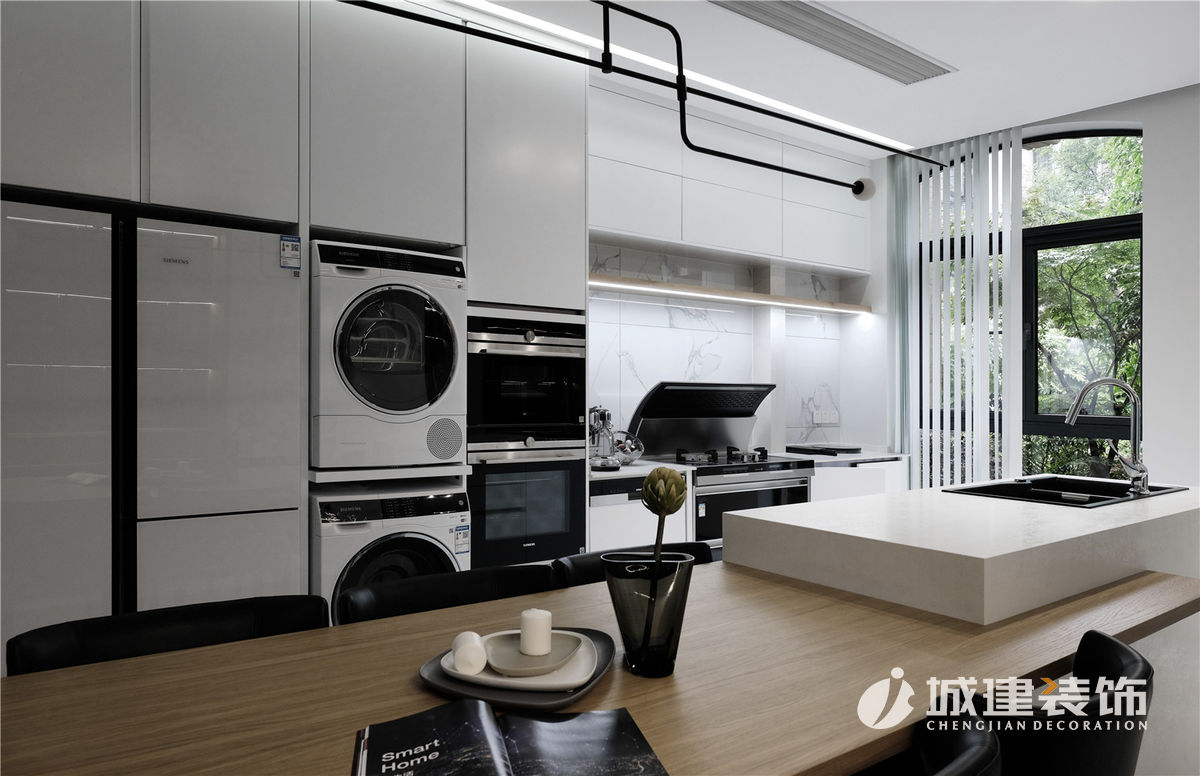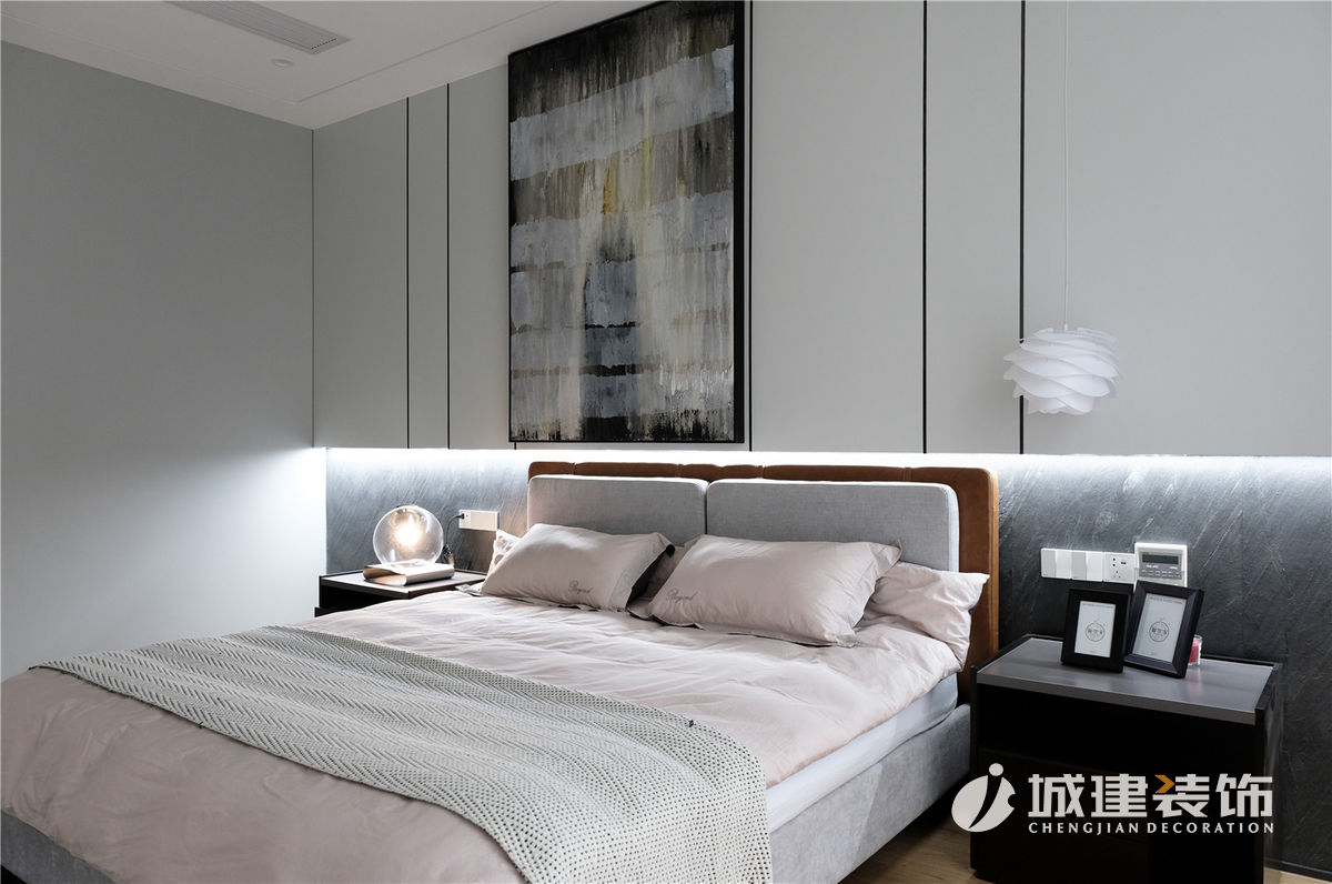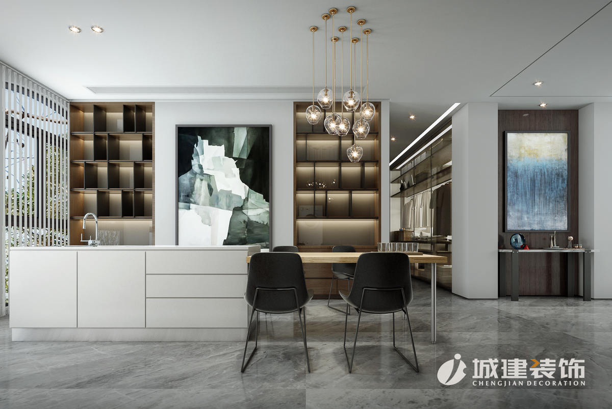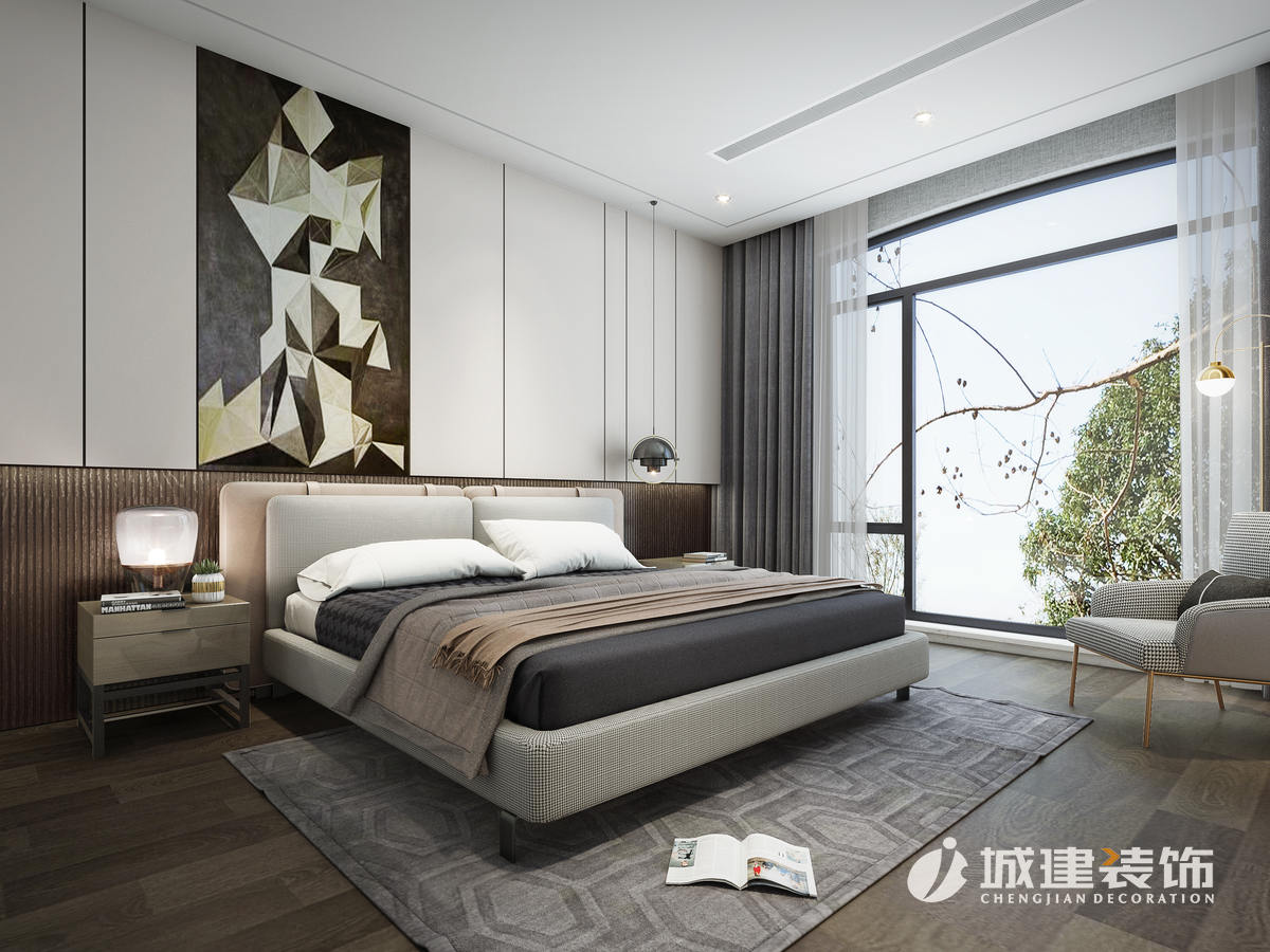 設(shè)計(jì)采用大面積的白色烤漆,黑胡桃木,玻璃幕墻。充分利用空間,形成黑白對(duì)比碰撞的效果。采用大幅裝飾畫,與空間格調(diào)進(jìn)行呼應(yīng),現(xiàn)代開放式廚房設(shè)計(jì),一字型導(dǎo)臺(tái)與原木餐桌重疊,從視覺上拉長(zhǎng)空間??蛷d開放式的空間設(shè)計(jì)搭配意大利現(xiàn)代家具,設(shè)計(jì)延續(xù)整體現(xiàn)代簡(jiǎn)約風(fēng)格。整體采用高級(jí)灰搭配皮質(zhì)元素,體業(yè)主品質(zhì)生活方式。臥室延續(xù)男主人灰色系的生活格調(diào),整個(gè)空間還特別根據(jù)業(yè)主需求,滿足業(yè)主夫妻的需求,分別單獨(dú)劃分空間設(shè)計(jì)各自的“獨(dú)處”世界。