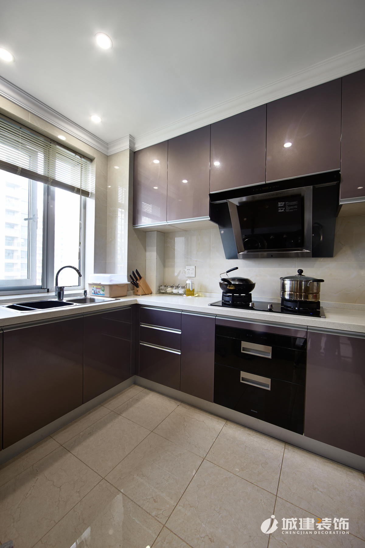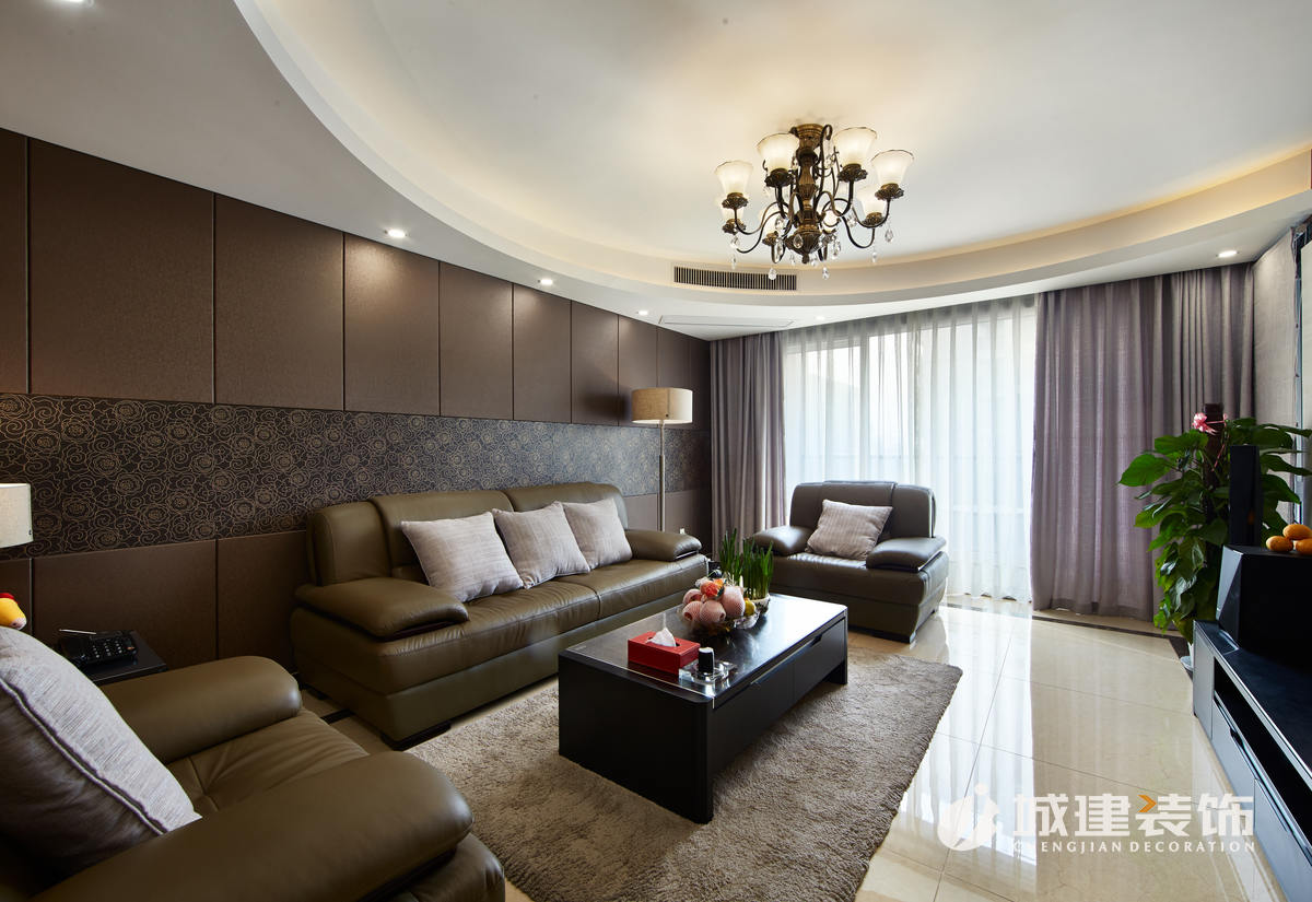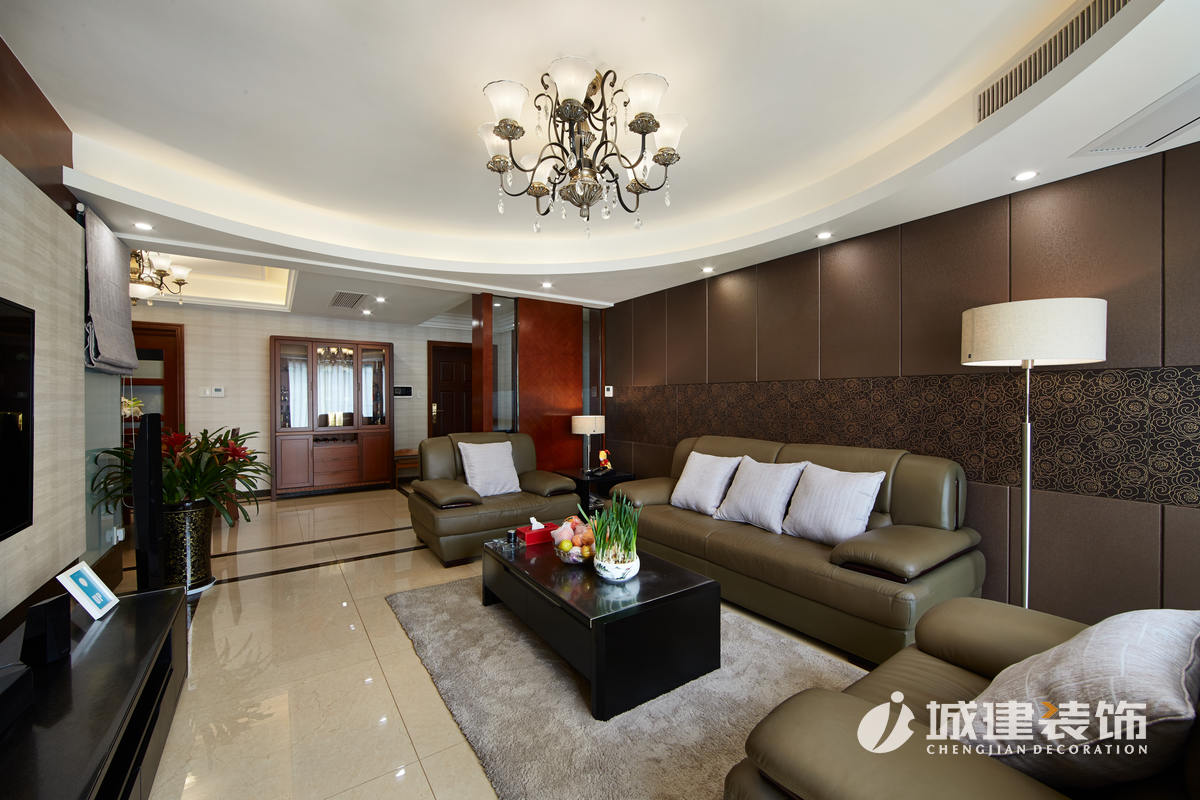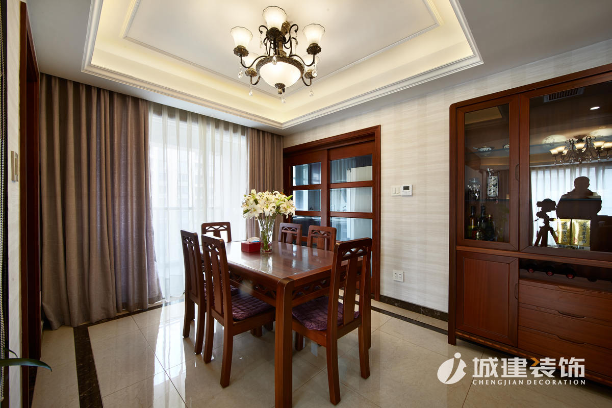 本案運用簡潔的線條,摒棄了復雜的裝飾,大面積白色與深色形成鮮明的對比,讓空間看起來干凈、明亮;棕紅色的家具又為家里增添一份中式古典的味道。整體空間大氣穩(wěn)重而不失時尚!
