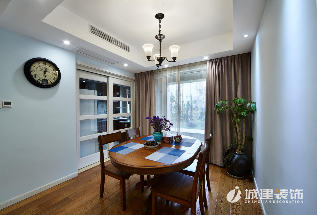 本案例沒有運(yùn)用藍(lán)色與白色的經(jīng)典搭配,而是白色的天花板,淡藍(lán)色的墻面,木質(zhì)地板與瓷磚拼接的地面,仿佛大海將天與地連成一片,是不是很“接地氣”呢!幾乎每個(gè)空間都有湖藍(lán)、海藍(lán)色的點(diǎn)綴,配上清新的花草,還有浪漫的拱廊,一切都那么自然柔和!