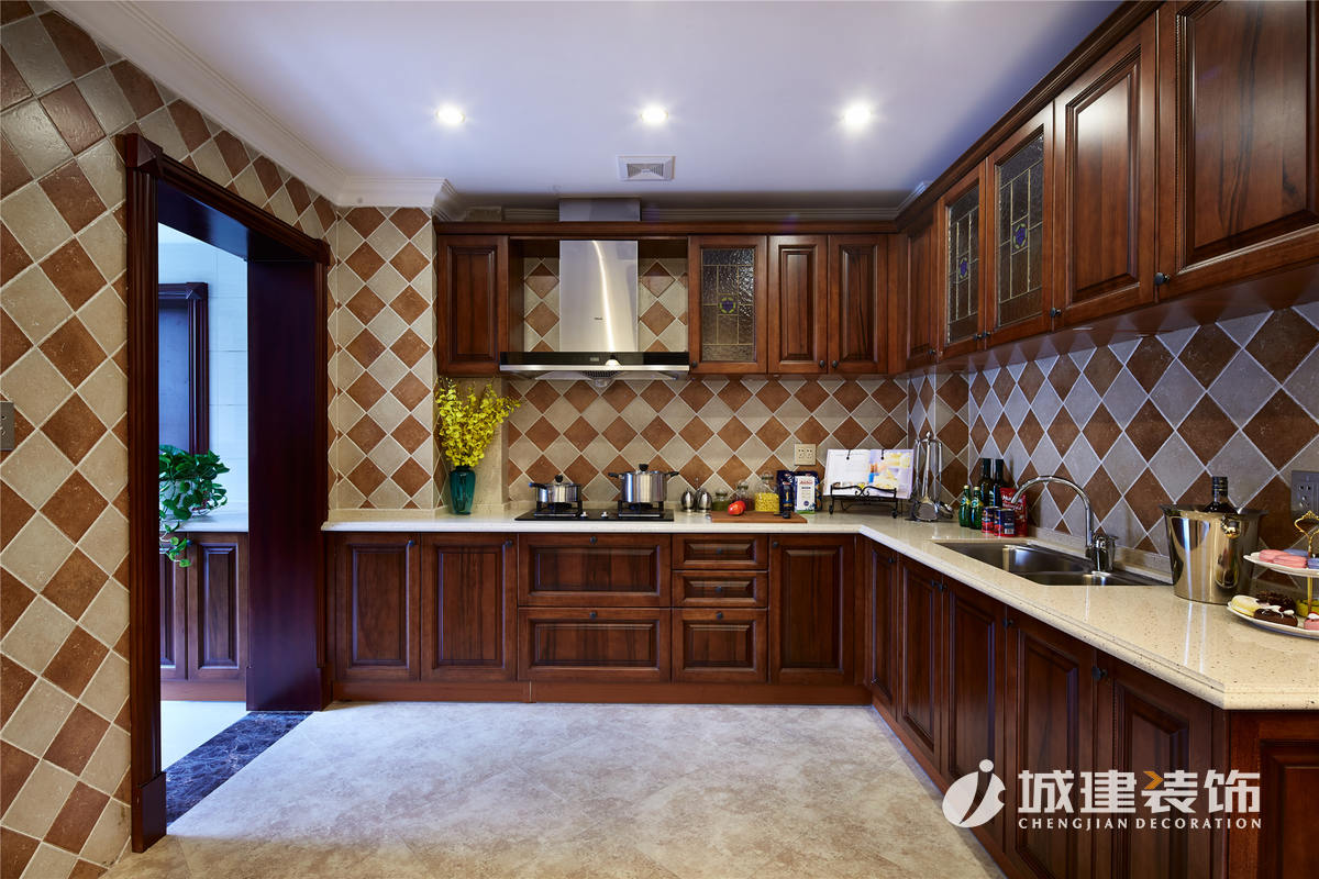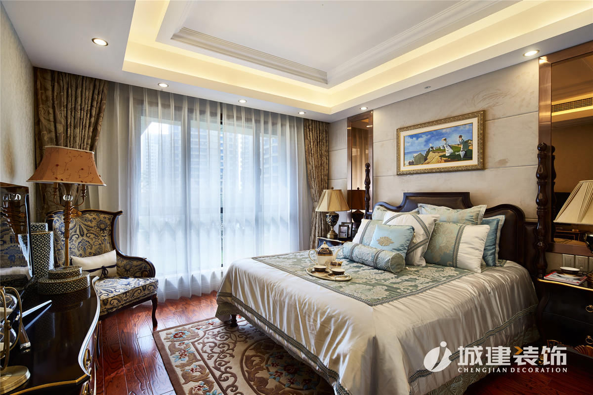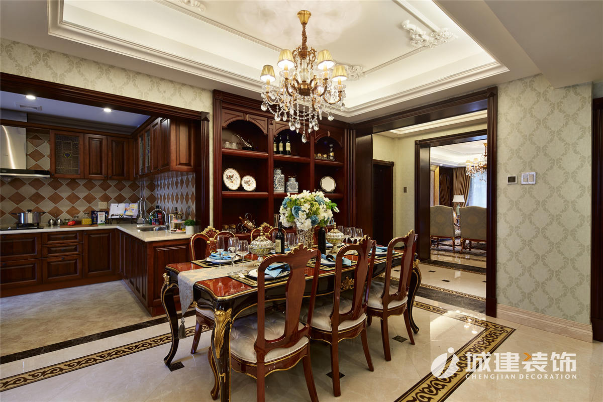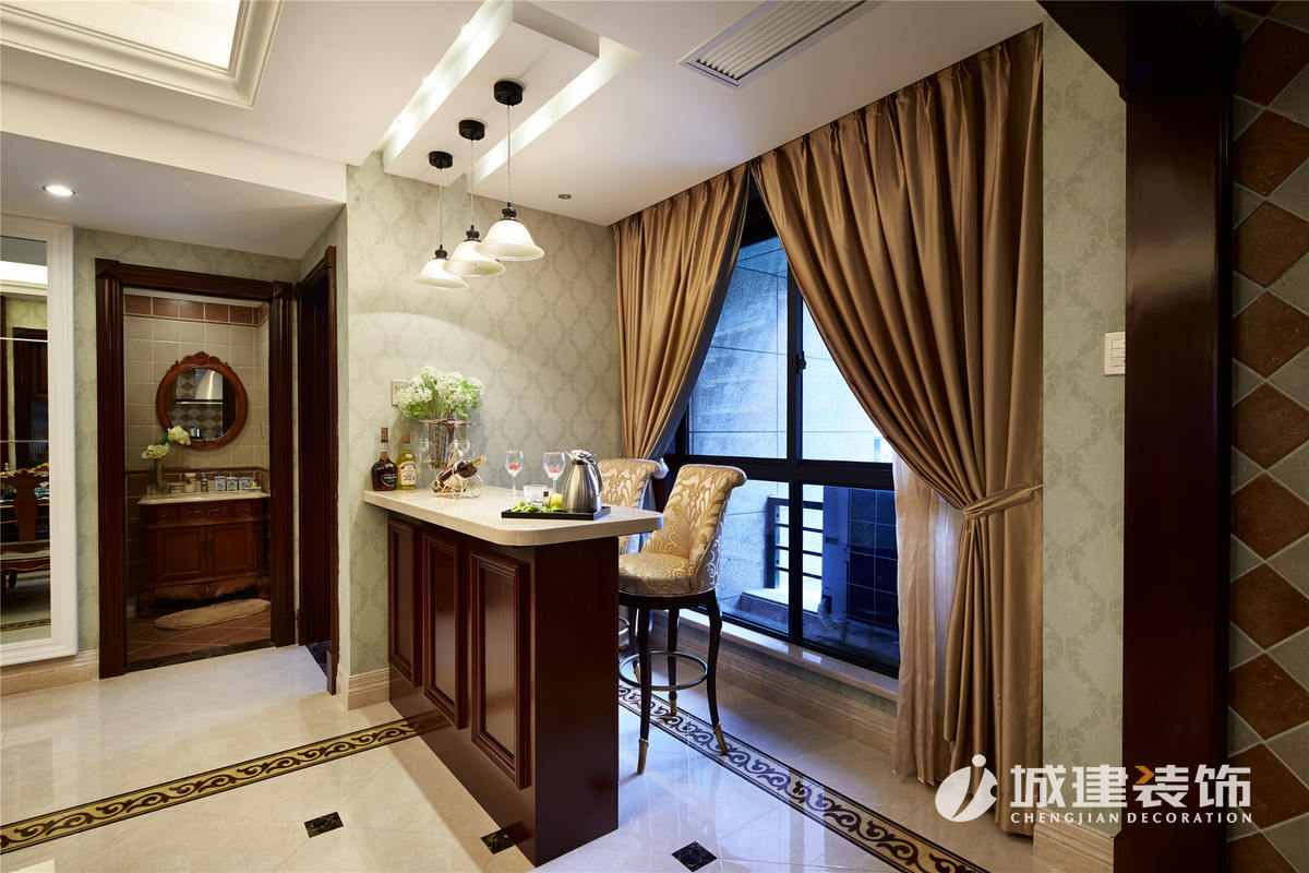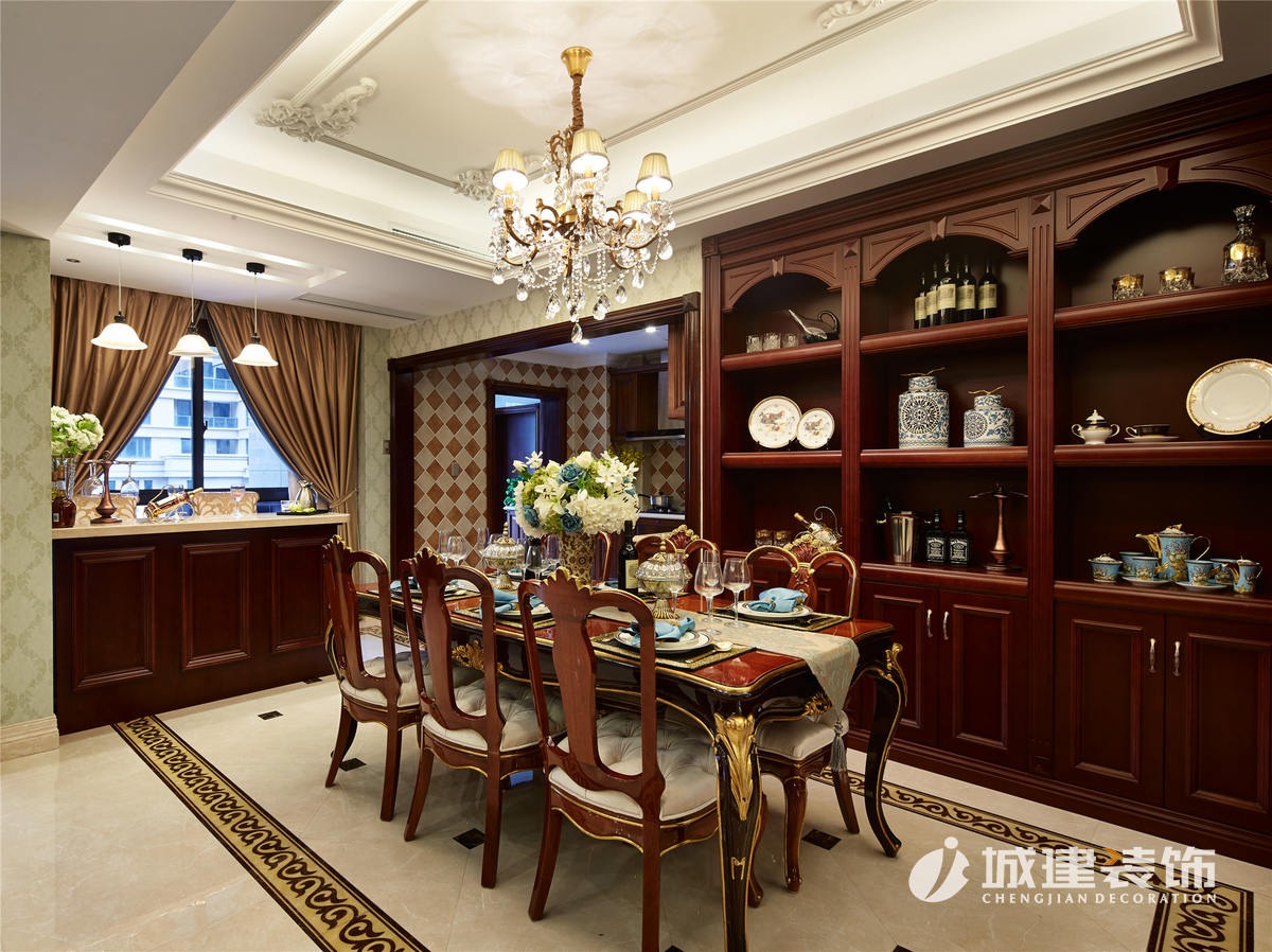 本案整體定義為簡美小奢華風(fēng)格。繁復(fù)的吊頂、金色實(shí)木鑲邊的裝飾、考究的軟搭,無不顯示了屋主的品質(zhì)生活。整個(gè)客廳可謂精雕細(xì)琢,大氣兼具別致,每一處細(xì)節(jié)都耐人尋味,可見設(shè)計(jì)師深厚的設(shè)計(jì)功底。