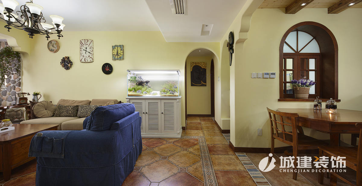 “地中海風格”對中國城市家居的最大魅力,來自其純美的色彩組合。直逼自然的柔和色彩,在喧囂的城市中感受自然的清新。將海洋元素滲透到家中各個角落,給人自然浪漫的感覺;隨處可見的拱門,給人延伸般的透視感。臥室、書房混搭現(xiàn)代美式,精致的家具,清新的顏色,都讓整個空間充滿時尚與活力。
