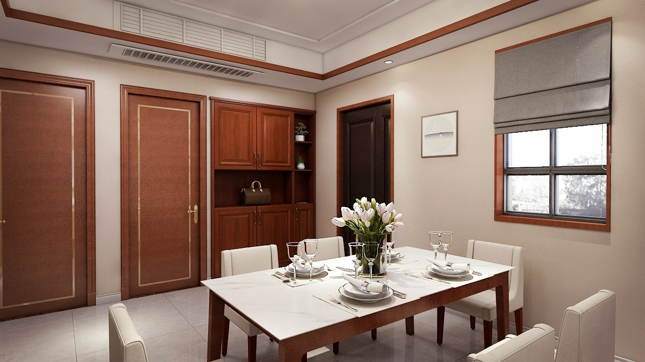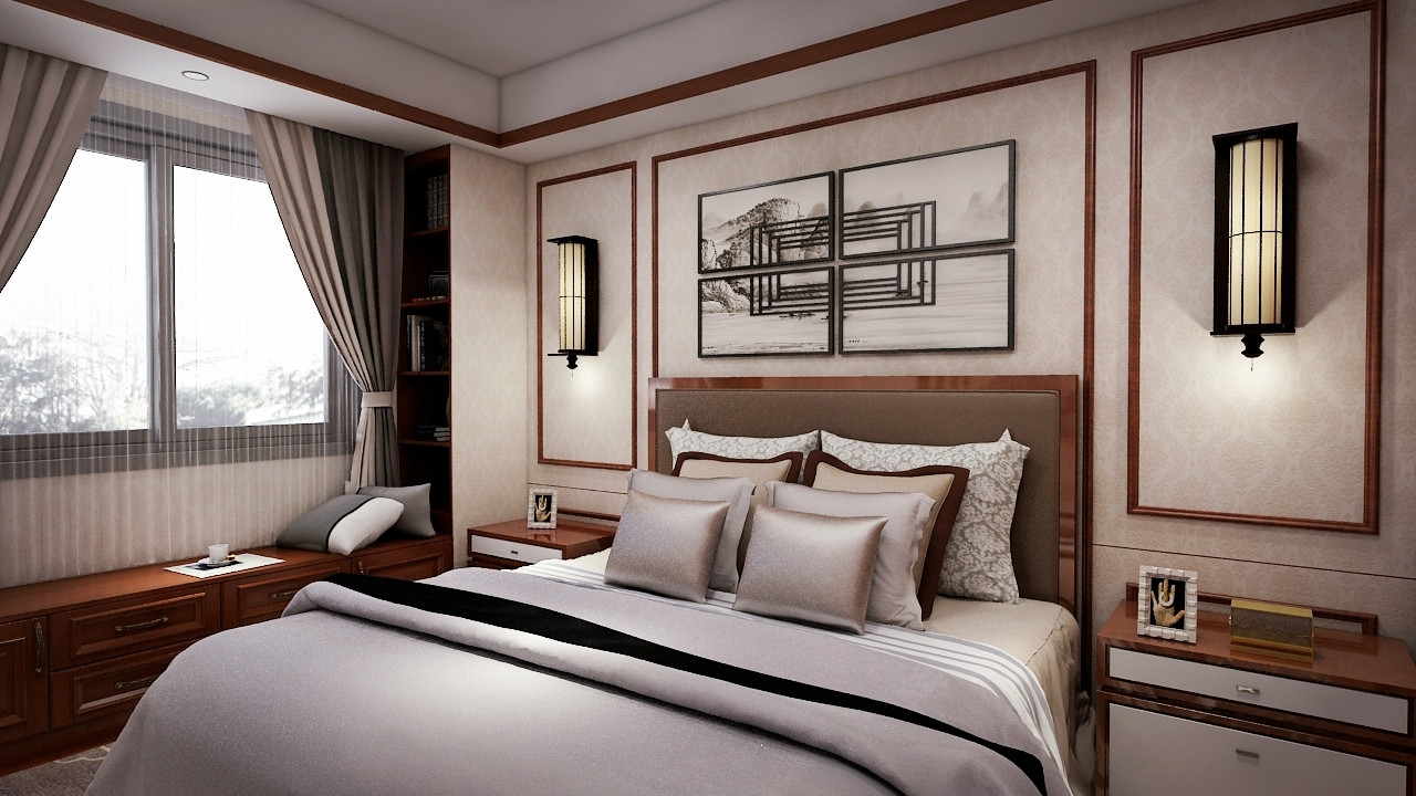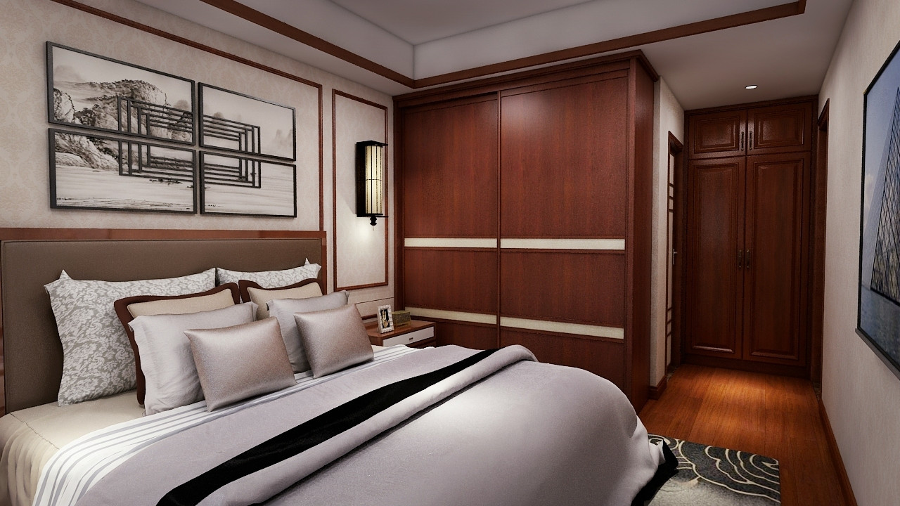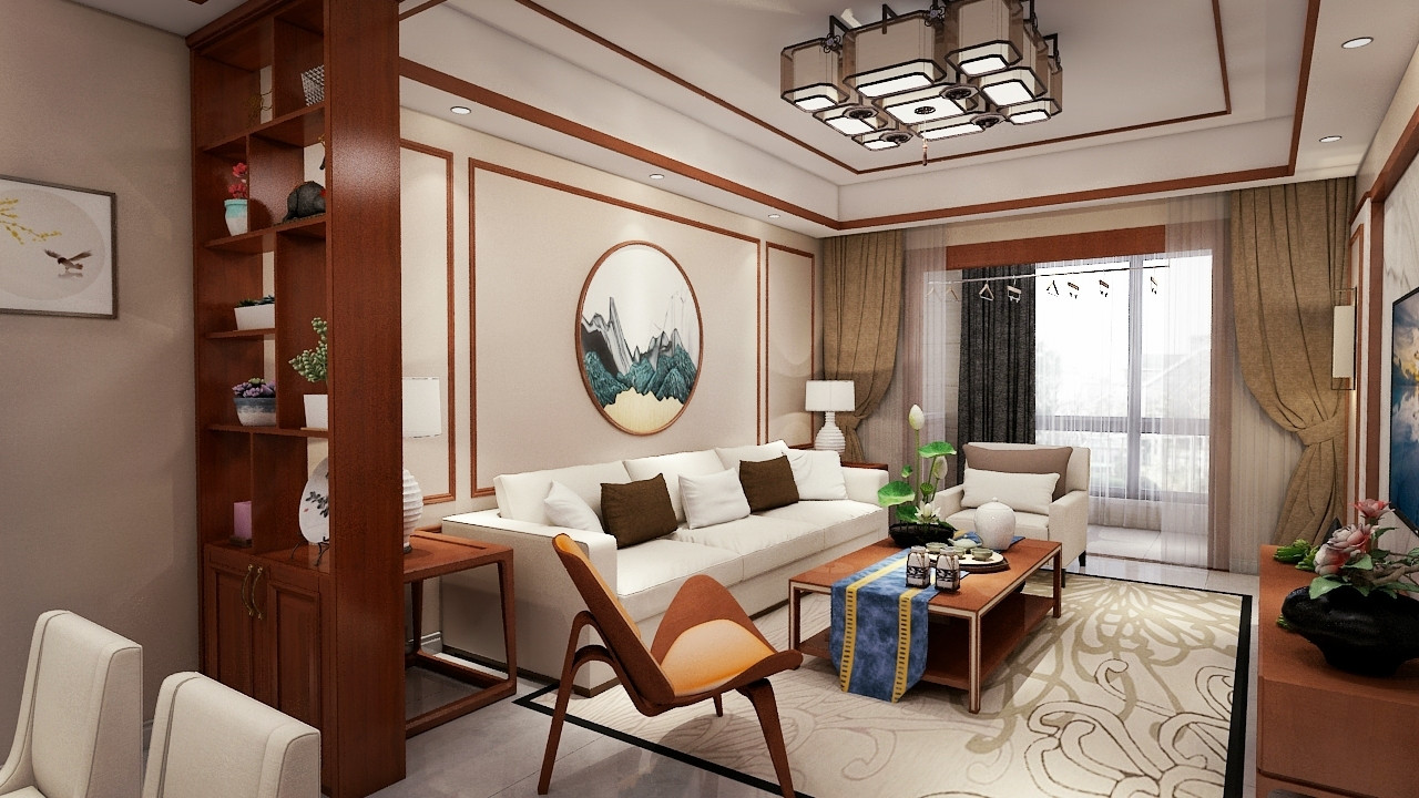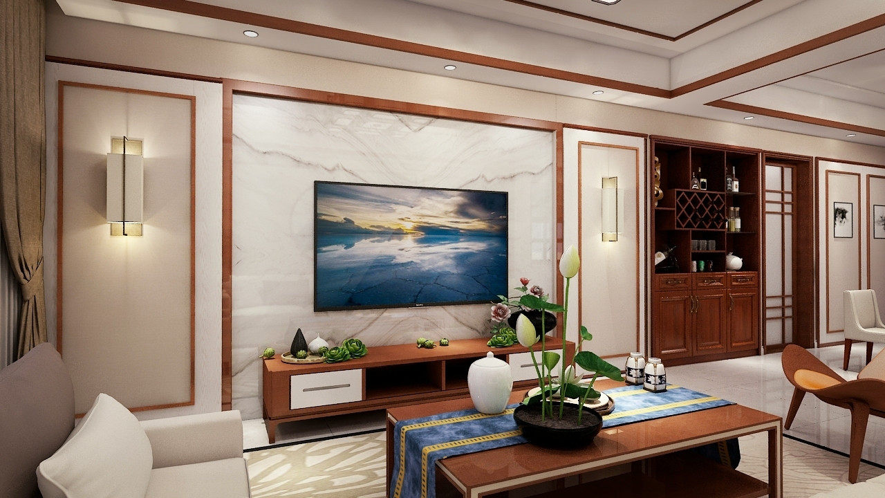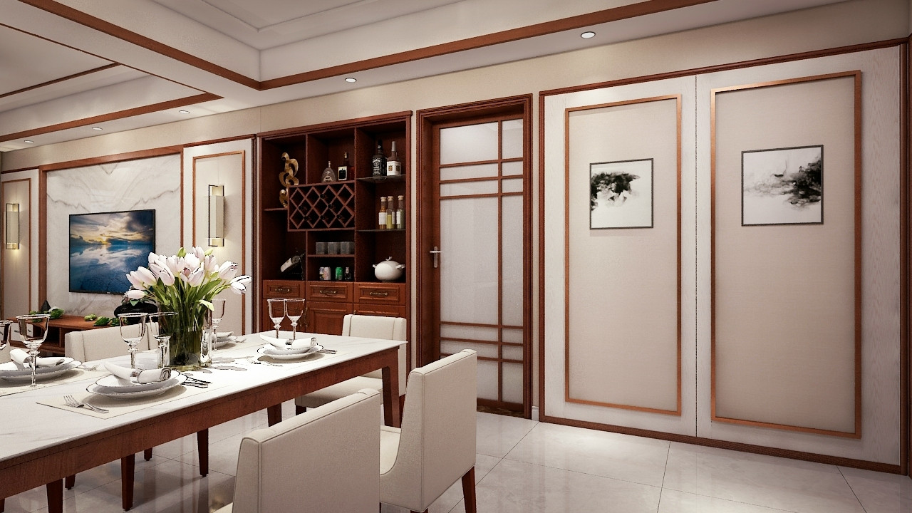 本案例摒棄純中式復(fù)雜瑣碎的雕刻,以簡約現(xiàn)代的手法賦予房屋全新的感受。古色古香的紅木家具搭配山水壁畫,仿佛置身于溫柔、朦朧的江南水鄉(xiāng)之中。在這樣的屋子里,世人可以沉靜下來,鬧市中尋求一片靜土。