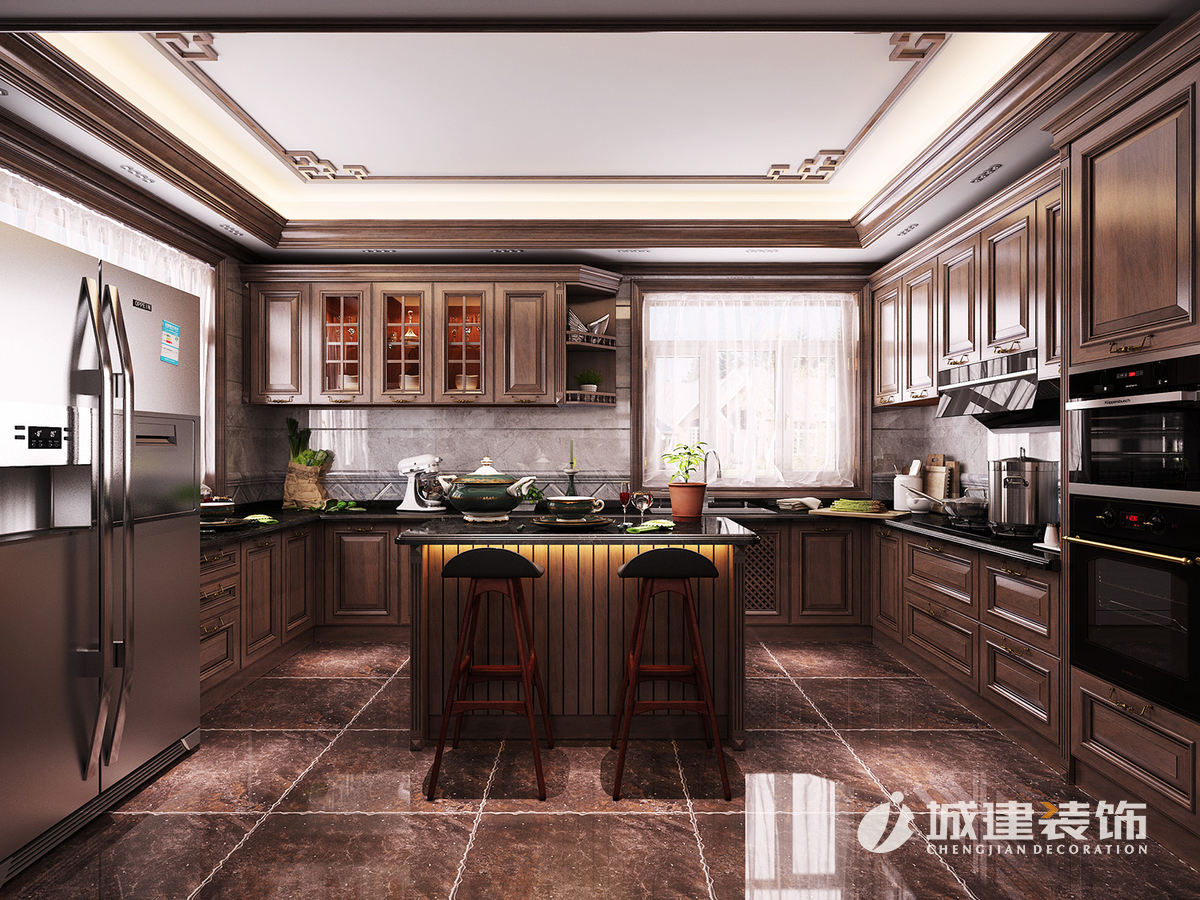 小區(qū)位于市區(qū)頂躍層,視線好,在頂樓臺(tái)露臺(tái)花園望出去,美景一覽無余。剛開始和業(yè)主接觸時(shí),業(yè)主還說想把房子賣了去買個(gè)別墅,但又有點(diǎn)舍不得。我說:這套房子地段好,像這么大面積的頂躍戶型,而且還帶頂樓花園,市區(qū)是很少的,以后都難買的到了。最終我們溝通好,把房子大大的改造了一方,因?yàn)槭欠碌谝淮窝b修是現(xiàn)代風(fēng)格,二次裝修想現(xiàn)代偏點(diǎn)中式,我就建議新中式,業(yè)主需求也是特殊的,要兩個(gè)廚房,因?yàn)橐粯菑N房實(shí)在是太小了,還考慮了賓館式的標(biāo)間(給私人司機(jī)先生臨時(shí)睡的)