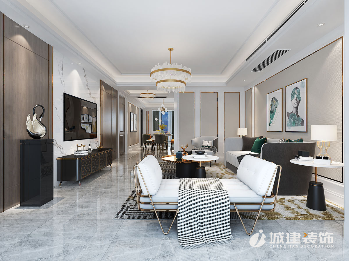設(shè)計亮點:每一個臥室的空間都變大了,客衛(wèi)進行了干濕分離??蛷d客廳整體色調(diào)以暖色調(diào)為主,墻面固定家具以白色調(diào)為主,家具以美國櫻桃木作為主色調(diào)來承托空間的穩(wěn)定性,并在后期裝飾中融入主母綠和橘黃色調(diào)為點綴色,來營造一種悠閑舒適的生活環(huán)境。暖灰的運用,增添了時尚感,不僅在電視背景墻上的運用達到了此效果,在布藝沙發(fā)的選擇上也明顯的彰顯了時尚的品味。