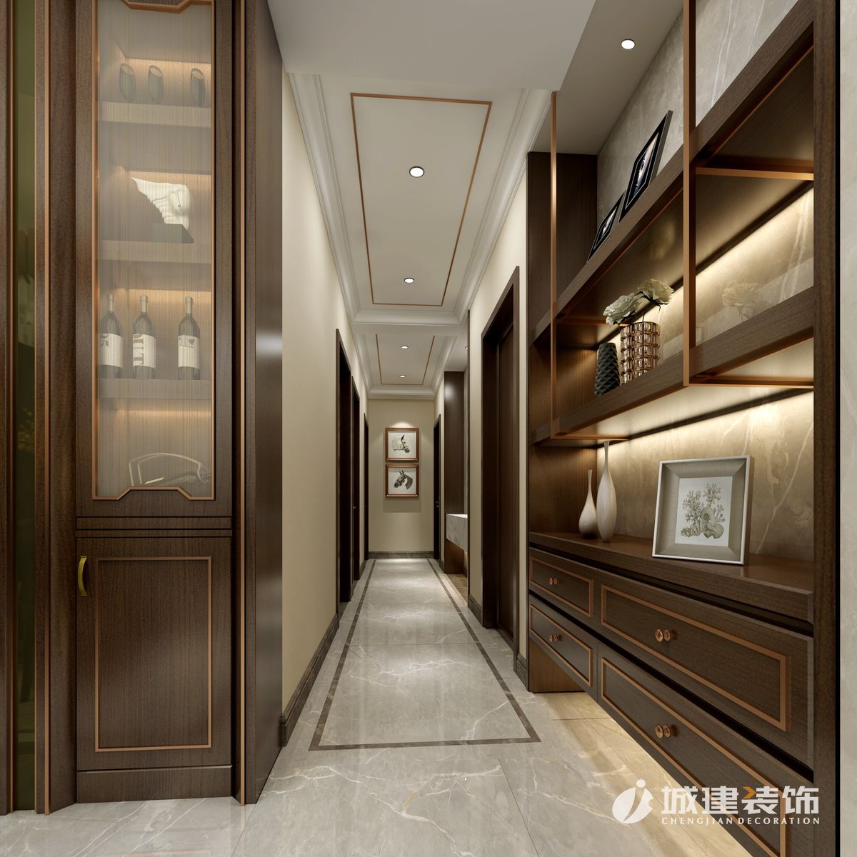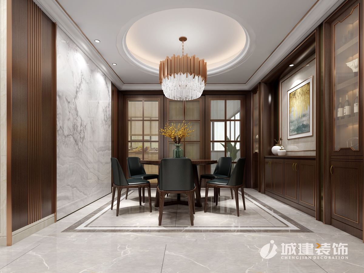 本案將港式設(shè)計(jì)風(fēng)格與時(shí)尚輕奢的現(xiàn)代元素融為一體,玫瑰金不銹鋼的金屬元素配以光澤潤(rùn)亮的天然大理石闡述了低調(diào)奢華的現(xiàn)代都市感。