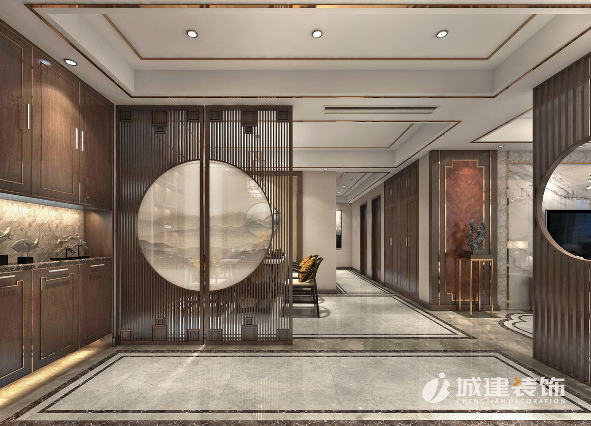 本案采用新中式風格,通過中式風格的特征,表達清雅含蓄。端莊豐華的東方式精神境界的追求。新中式不是純粹的傳統(tǒng)元素堆砌,而是通過對傳統(tǒng)文化的認識,將現(xiàn)代元素和傳統(tǒng)元素結合在一起,以現(xiàn)代人的審美需求來打造富有傳統(tǒng)韻味的裝飾。