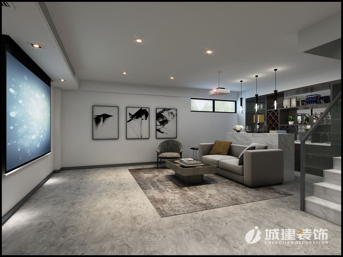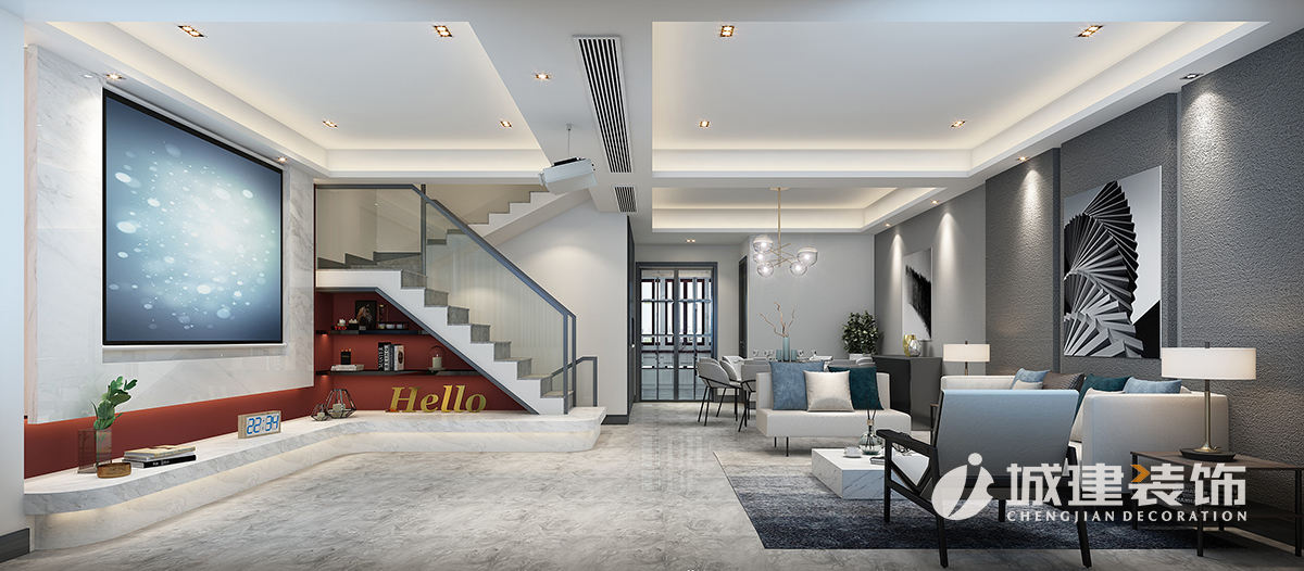 家的設(shè)計(jì)需要回歸日常,剝離不必要的裝飾,在自然與時(shí)光的烹調(diào)下,找到屬于自己最舒適的狀態(tài)。整體色調(diào)以深淺不一的灰色調(diào)為主,客廳樓梯第一踏步與電視臺(tái)聯(lián)為一體顯示出線(xiàn)條感更強(qiáng)烈。主臥床頭背景運(yùn)用硬包設(shè)計(jì)顯示低調(diào)奢華。