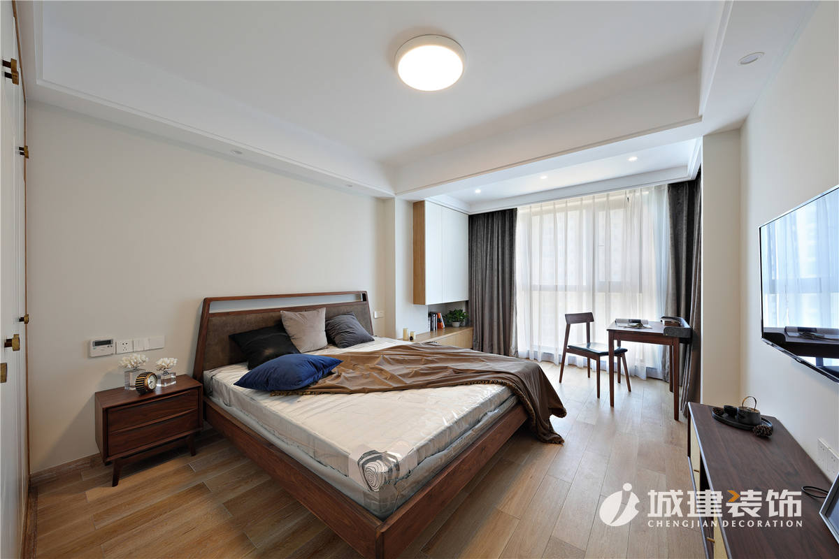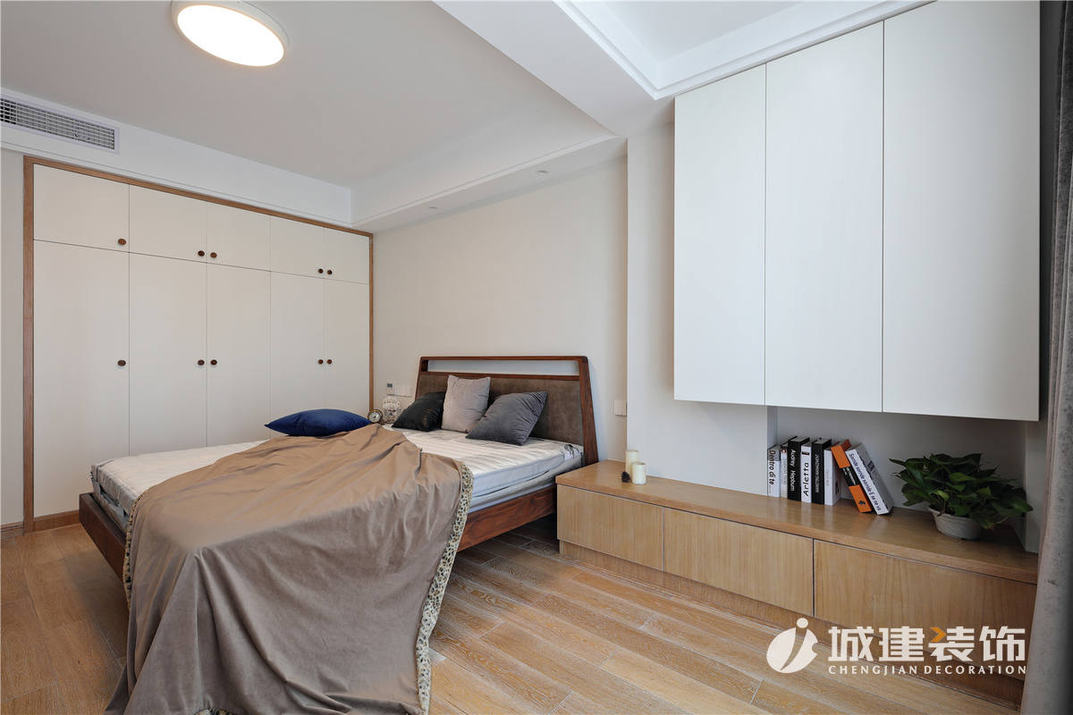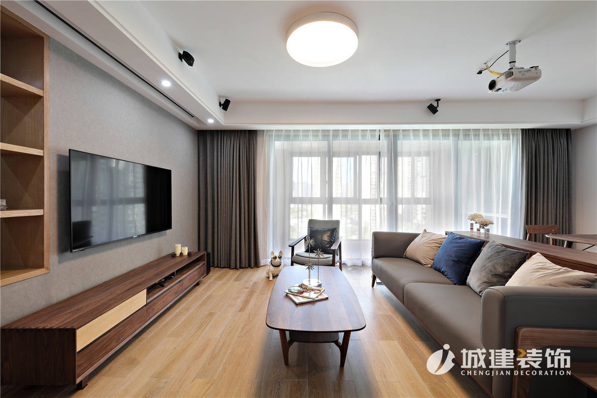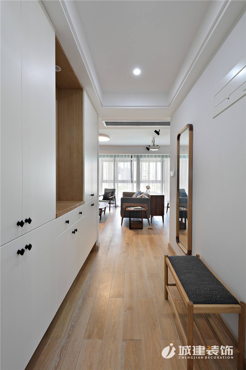 本案設(shè)計(jì)以白色,胡桃木色為主色調(diào),搭配灰色背景色,用少而精的陳設(shè),在滿足基本功能的需求下,達(dá)到以少勝多,以簡單勝繁瑣的效果,舍去了天花吊頂,避免了層高低的壓抑感。通過設(shè)計(jì)去感受業(yè)主不為物所累,把有價(jià)值的事物留在生活中的生活方式。房間里簡單的幾幅掛畫作為視覺點(diǎn)。初陽暮色,創(chuàng)造一種平靜,治愈的氛圍。本是匆匆一瞥, 卻想停下來,靜靜的端詳。