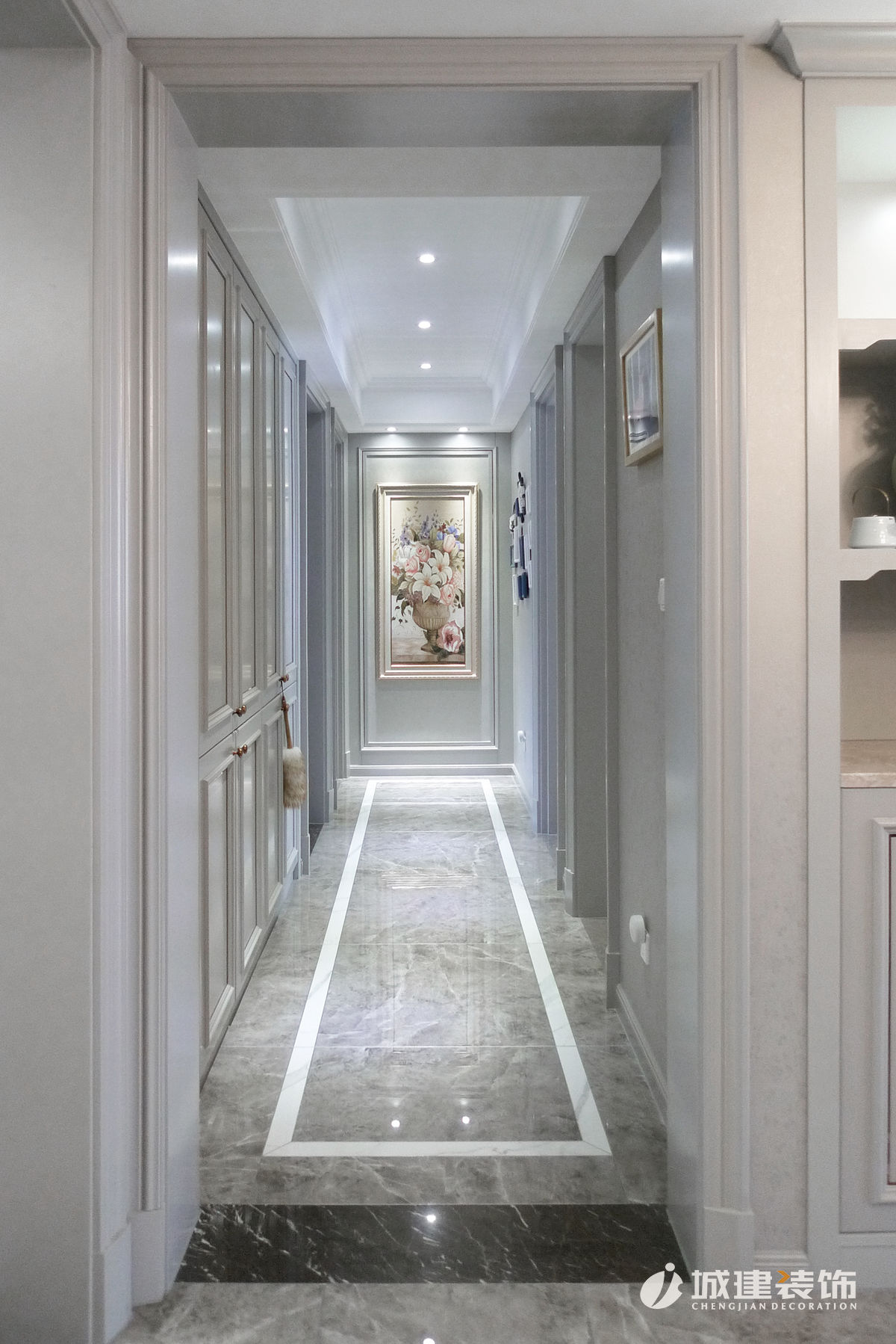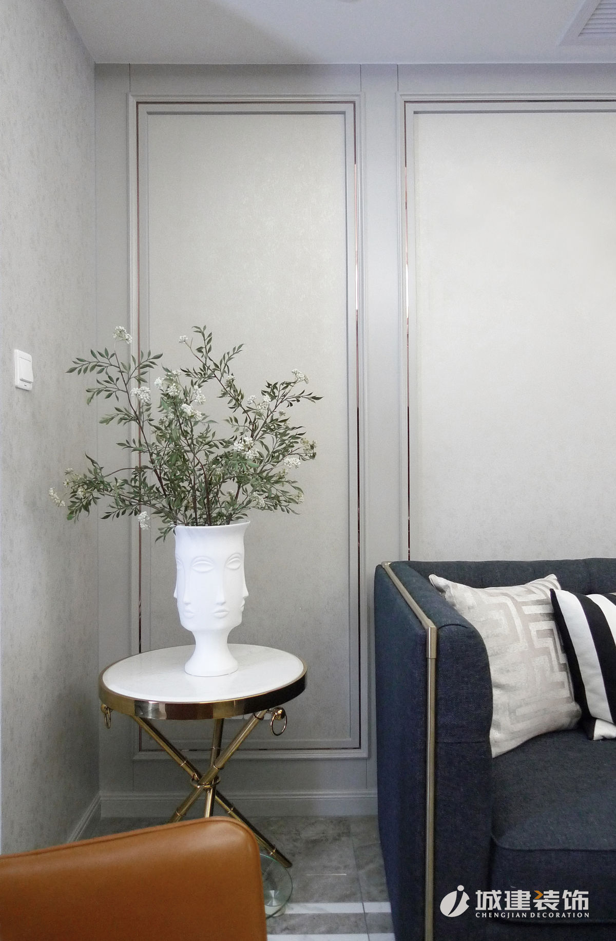 另外本案的設(shè)計(jì)在墻面考慮的是淺灰色搭配嵌金屬不銹鋼,簡(jiǎn)單的護(hù)墻,搭配純色暗紋的墻紙。墻面整體不會(huì)那么亂,后期窗簾 以及活動(dòng)家具考慮選擇細(xì)致以及亮的顏色質(zhì)感,讓整個(gè)空間感不那么沉悶!包括金屬質(zhì)感的家具腳以及燈的金屬件,這個(gè)和墻面不銹鋼的嵌條有個(gè)銜接!讓整體更加和諧。