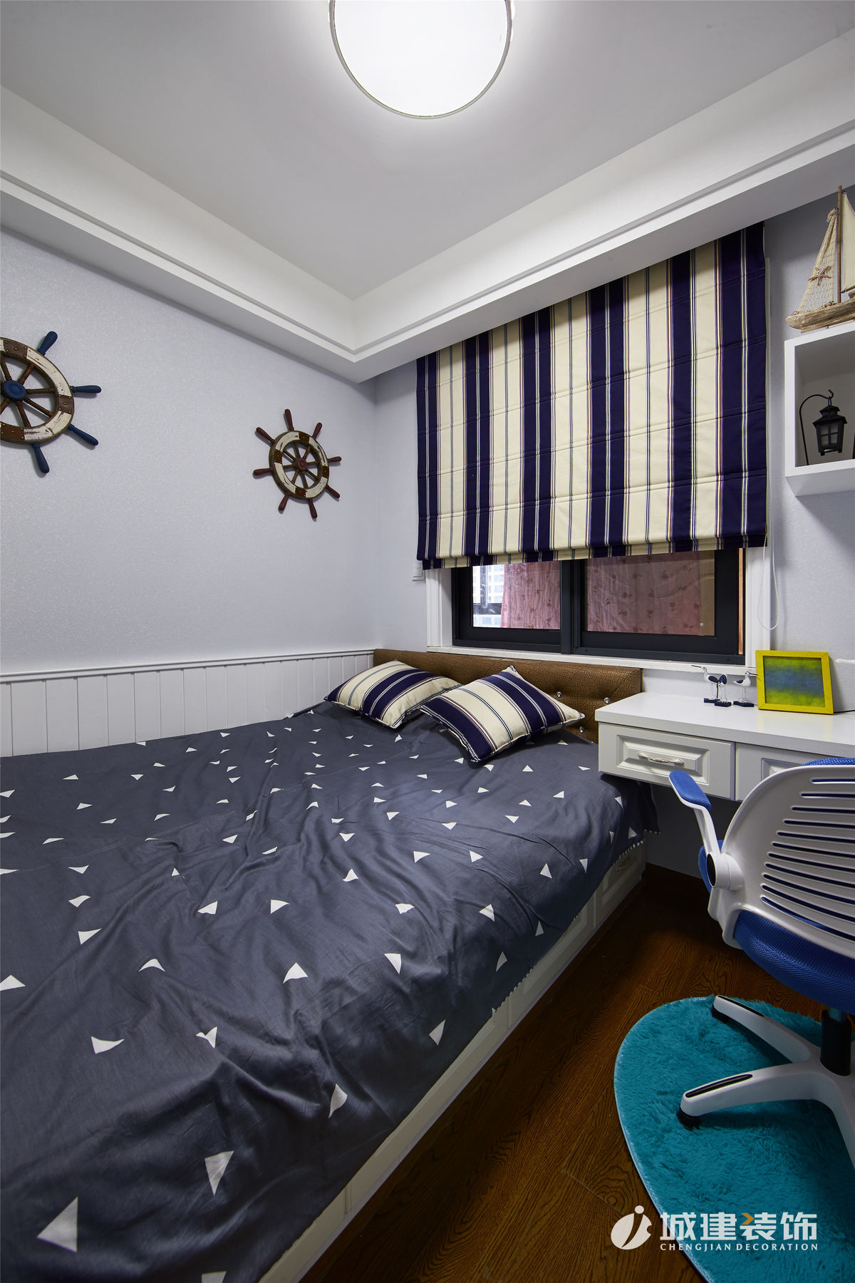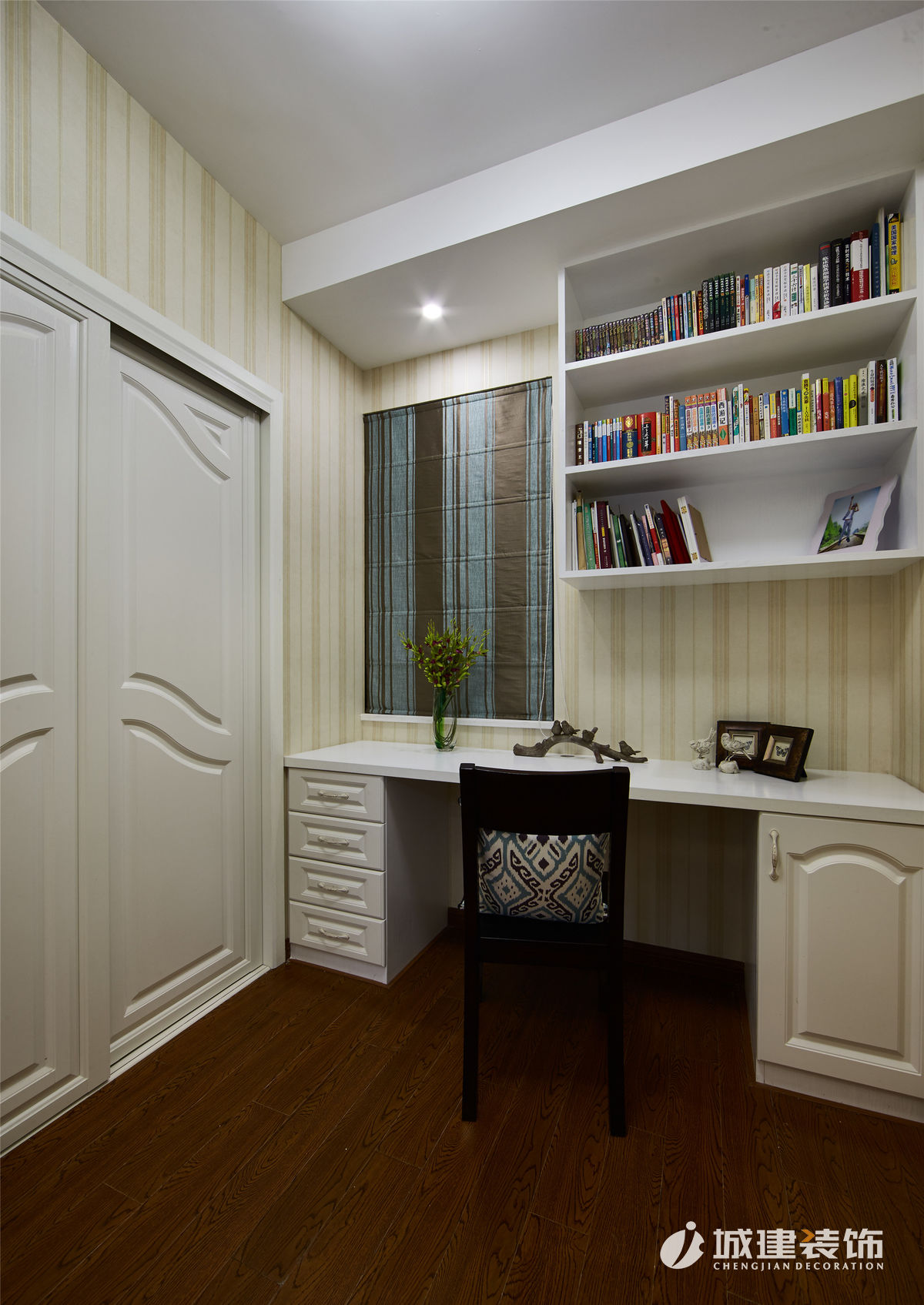 步入主臥前需要先進(jìn)入書(shū)房,這也是本案設(shè)計(jì)最大亮點(diǎn),極大地保證的主臥的私密性,同時(shí)挪用書(shū)房的一部門空間設(shè)計(jì)了衣帽間,也為一家人增加了不少的儲(chǔ)物空間。小孩子房采用榻榻米設(shè)計(jì),一側(cè)另辟小型書(shū)桌,一個(gè)空間滿足儲(chǔ)物功能的同時(shí),又能讓孩子學(xué)習(xí)休息兩不誤。