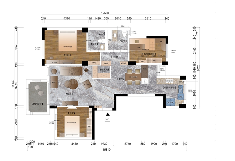 案例風格:現(xiàn)代/案例戶型:三居室/戶型面積:130.00㎡