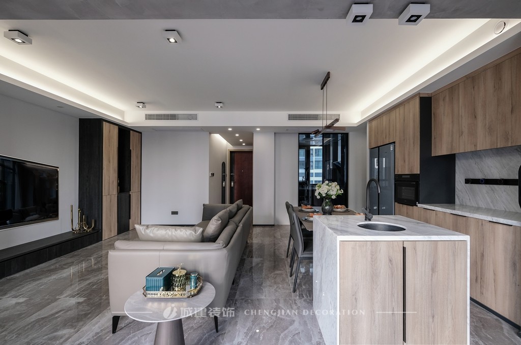 玄關(guān)往里走,便是視野開闊的客餐廳區(qū)。