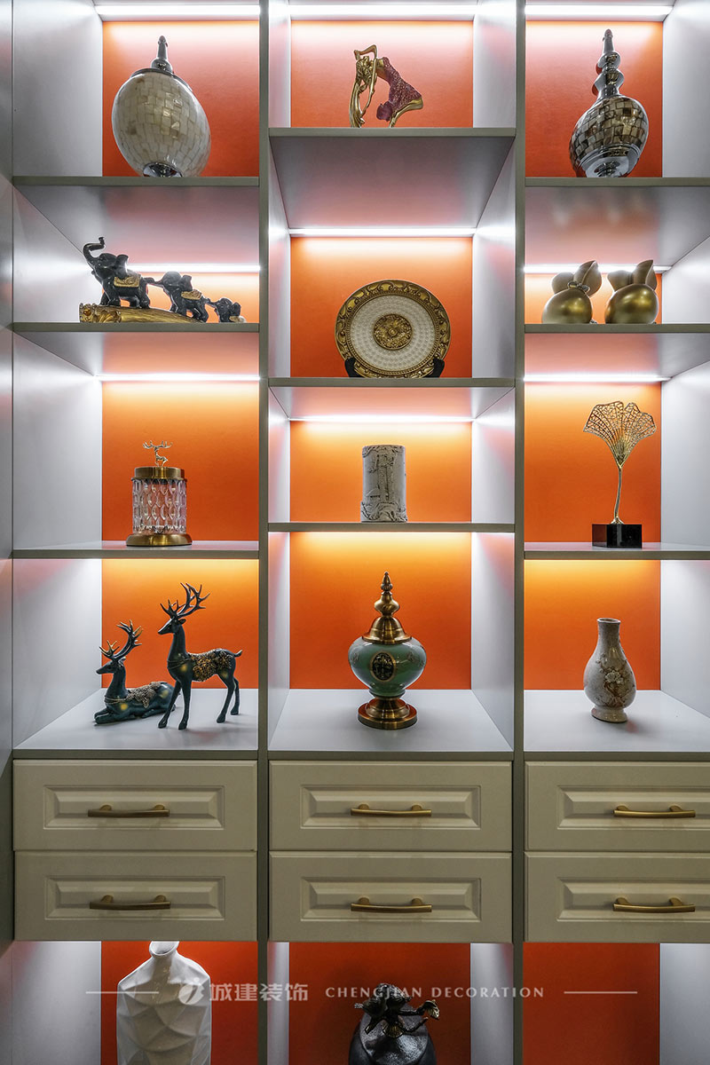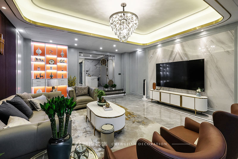 金屬元素的輕奢點(diǎn)綴以及水晶吊燈折射的璀璨,營造了一個(gè)浪漫精致的美學(xué)空間。
