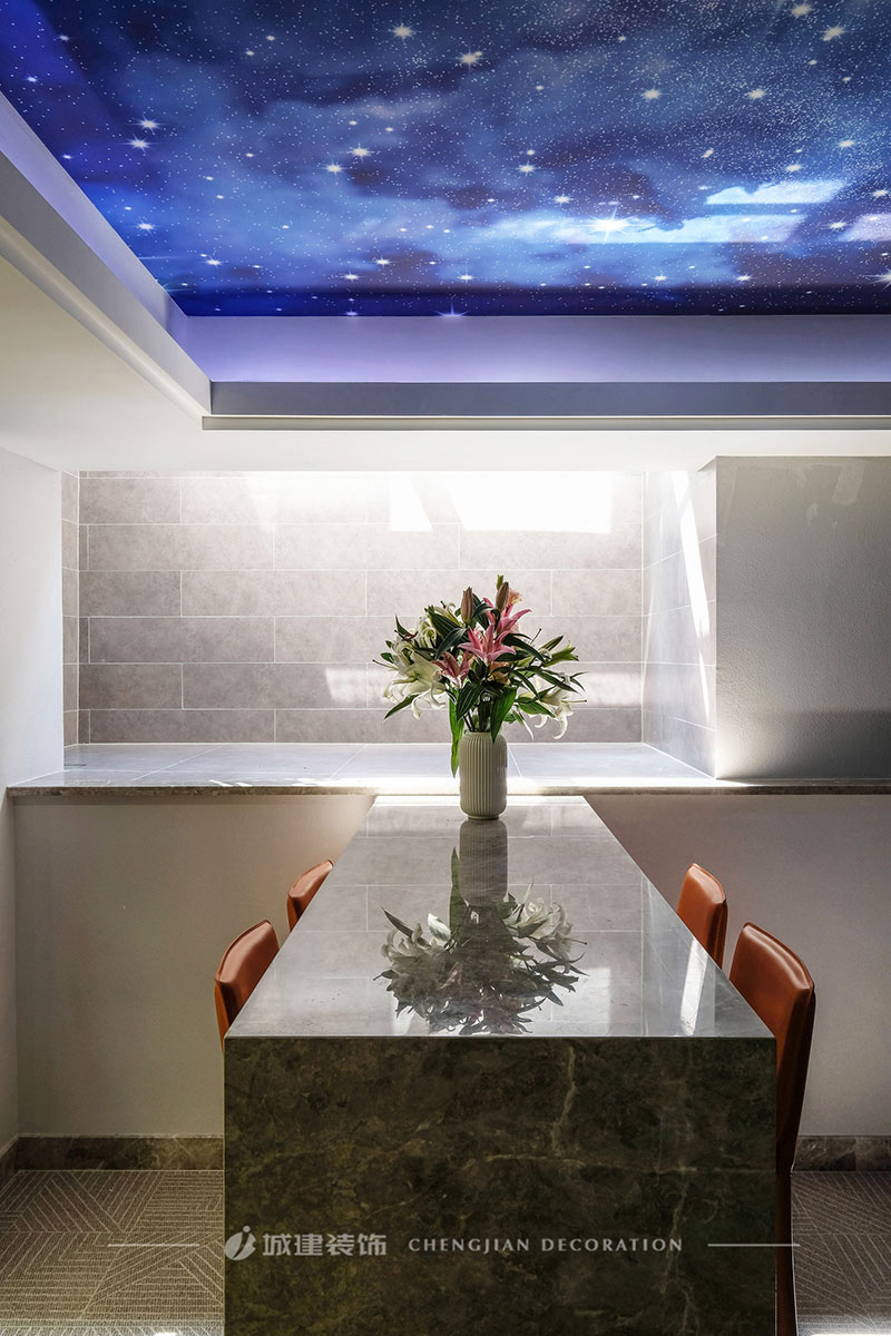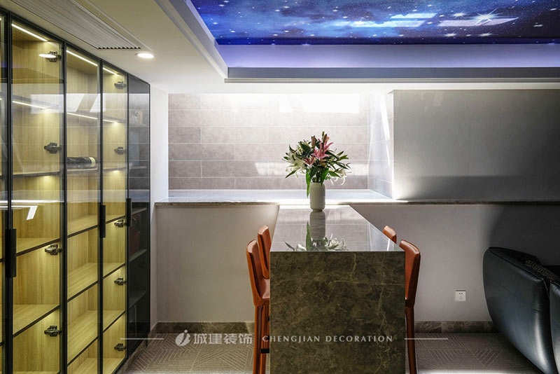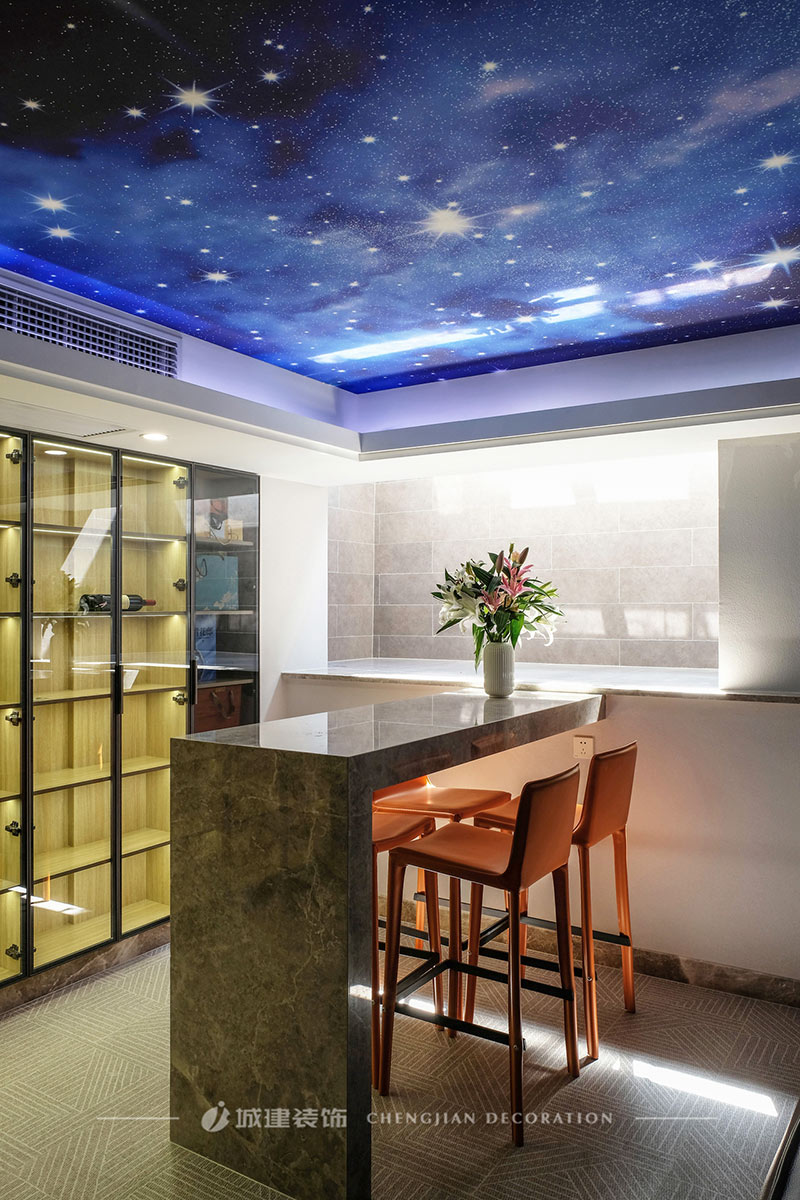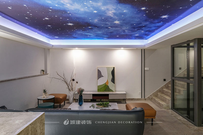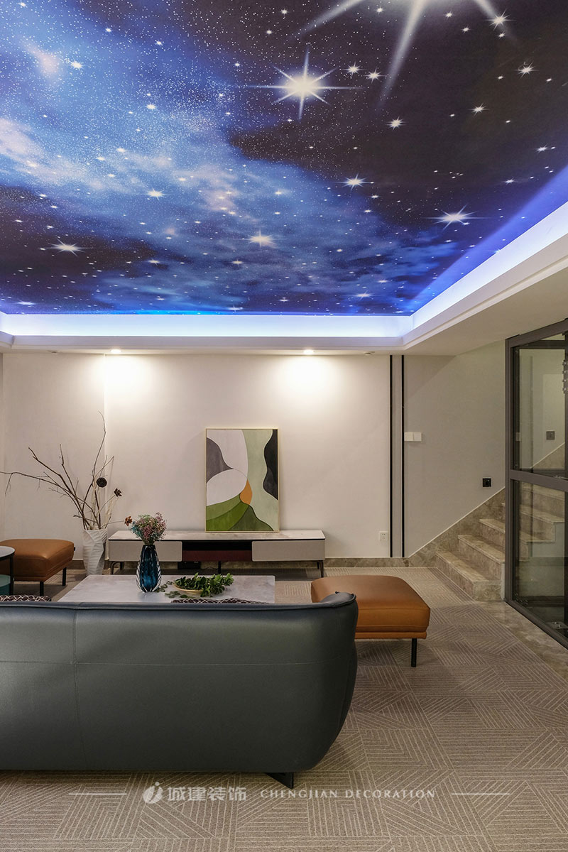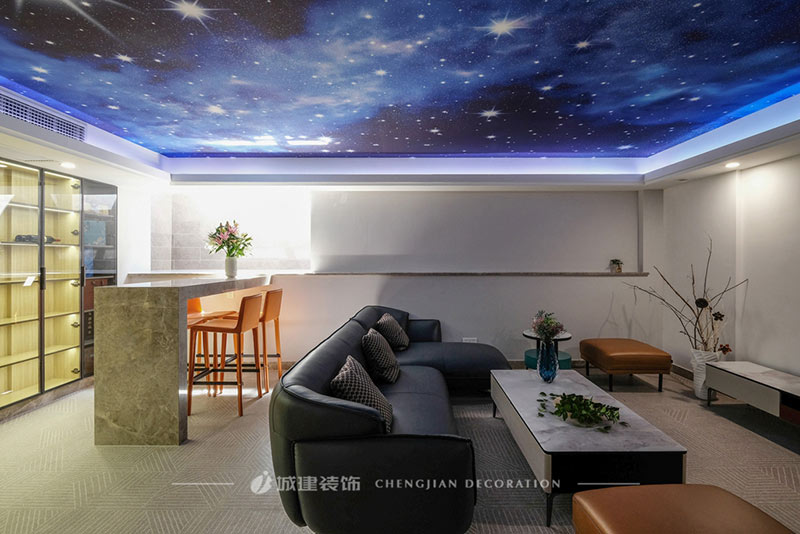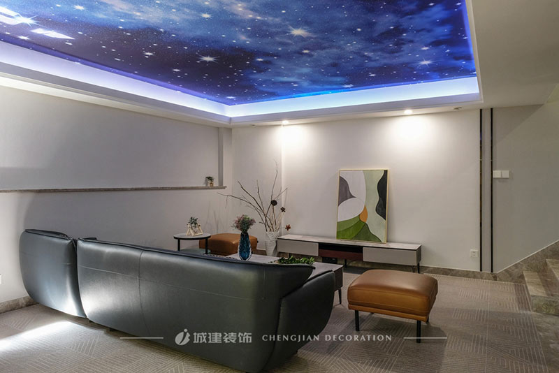 影視廳湛藍(lán)的星空頂,視覺傳達(dá)給人無線的空間放大感。