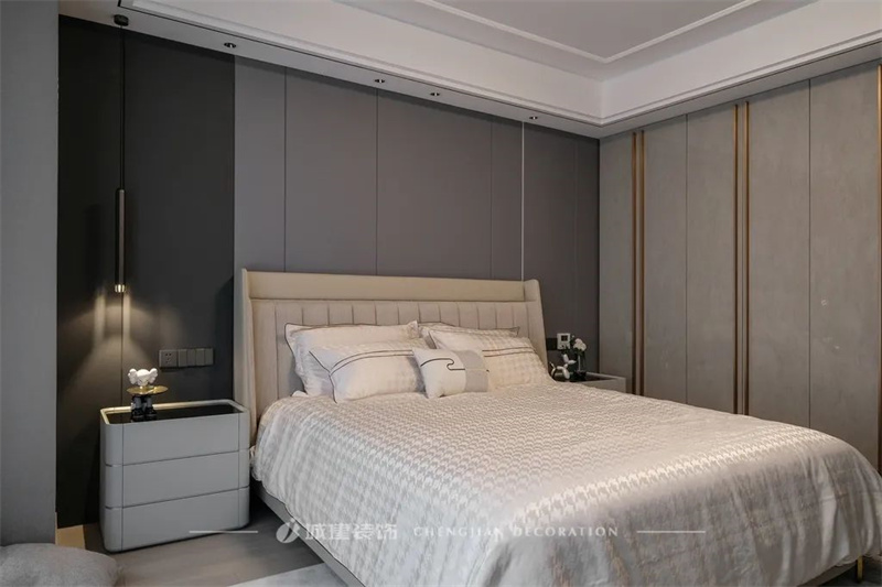 臥室也不再有一定需要床頭的概念,床頭可以演變成一面床頭背景墻,也可以和收納柜很好的結(jié)合,床頭柜與床一體,不僅充分利用每一寸空間,也讓整個(gè)臥室看起來(lái)更具高級(jí)感和整體感。