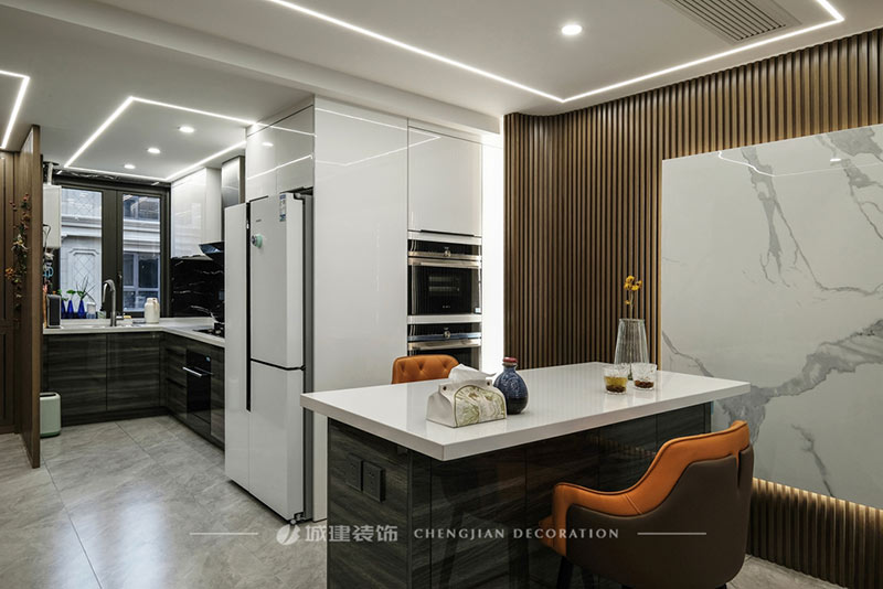 吧臺成為廚房到客廳之間的過渡聯(lián)接,